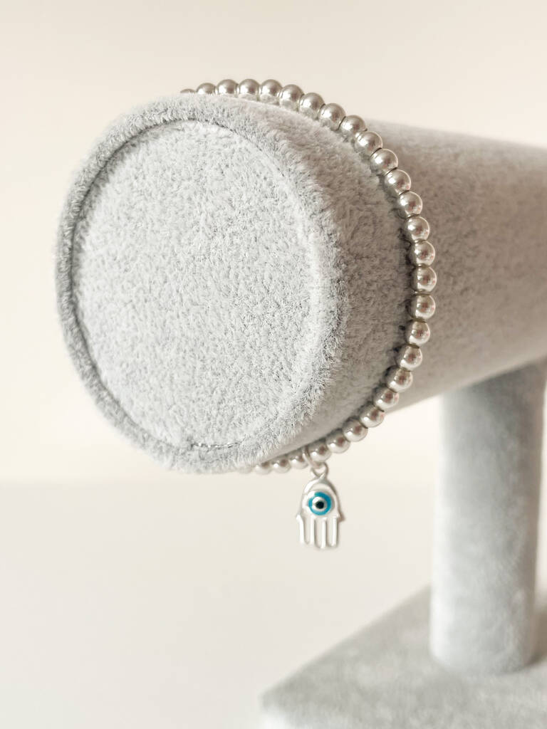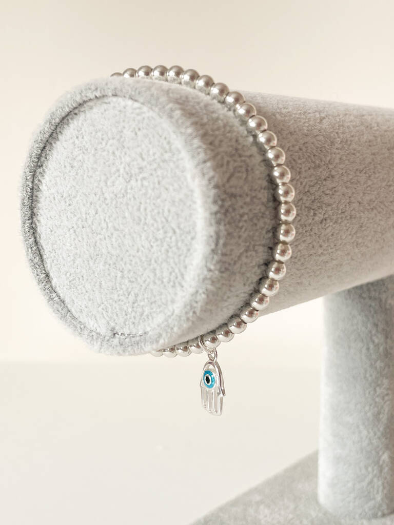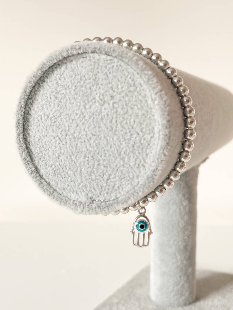 Sterling Silver Hamsa Charm Beaded Bracelet
