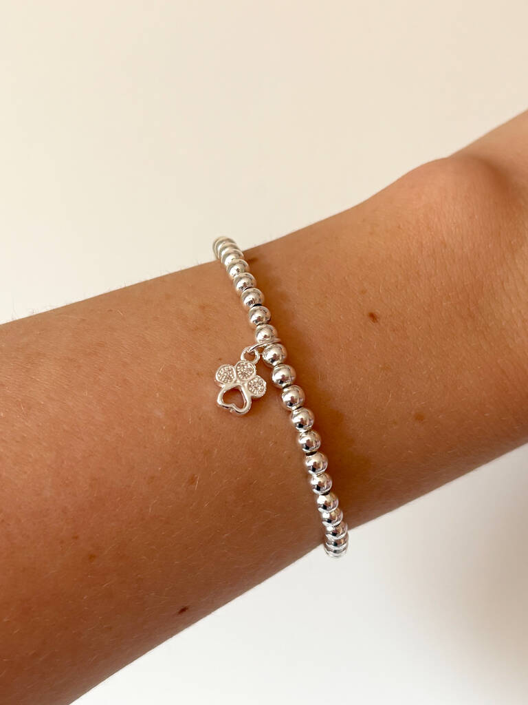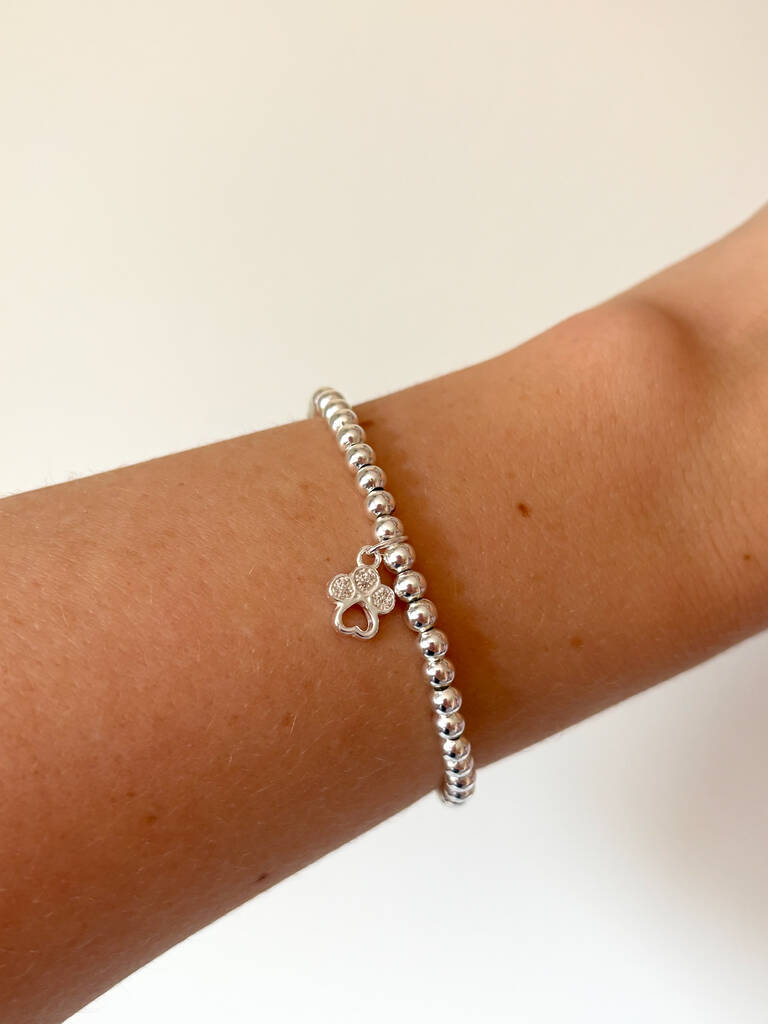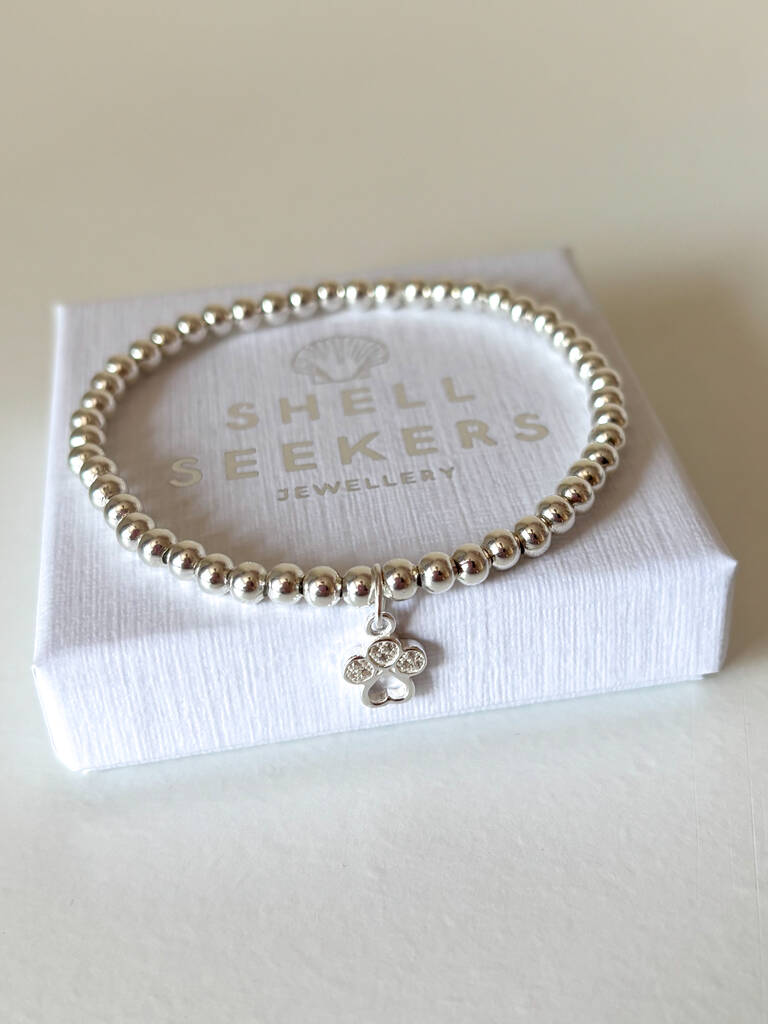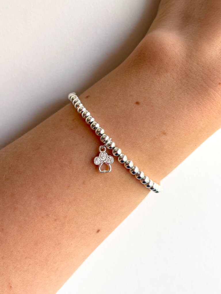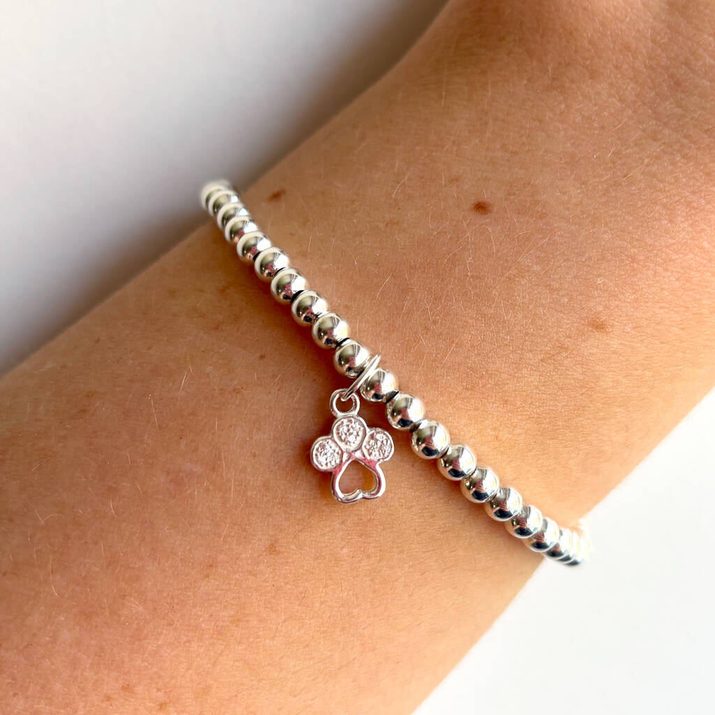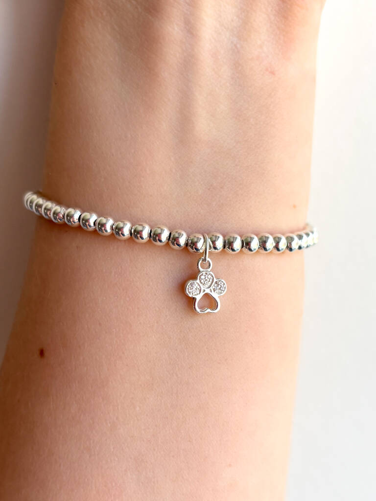 Sterling Silver Paw Print Charm Beaded Bracelet