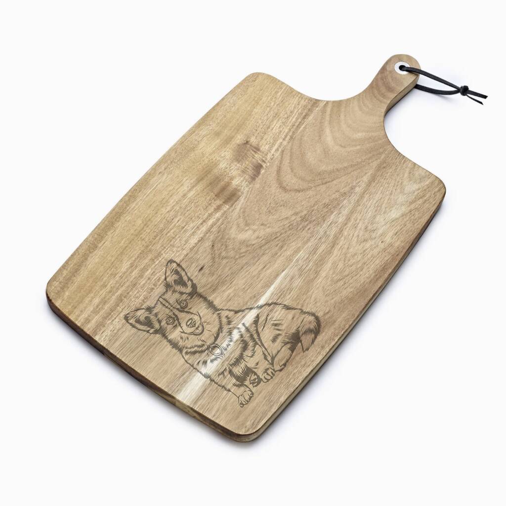 Personalised Corgi Engraved Acacia Serving Board