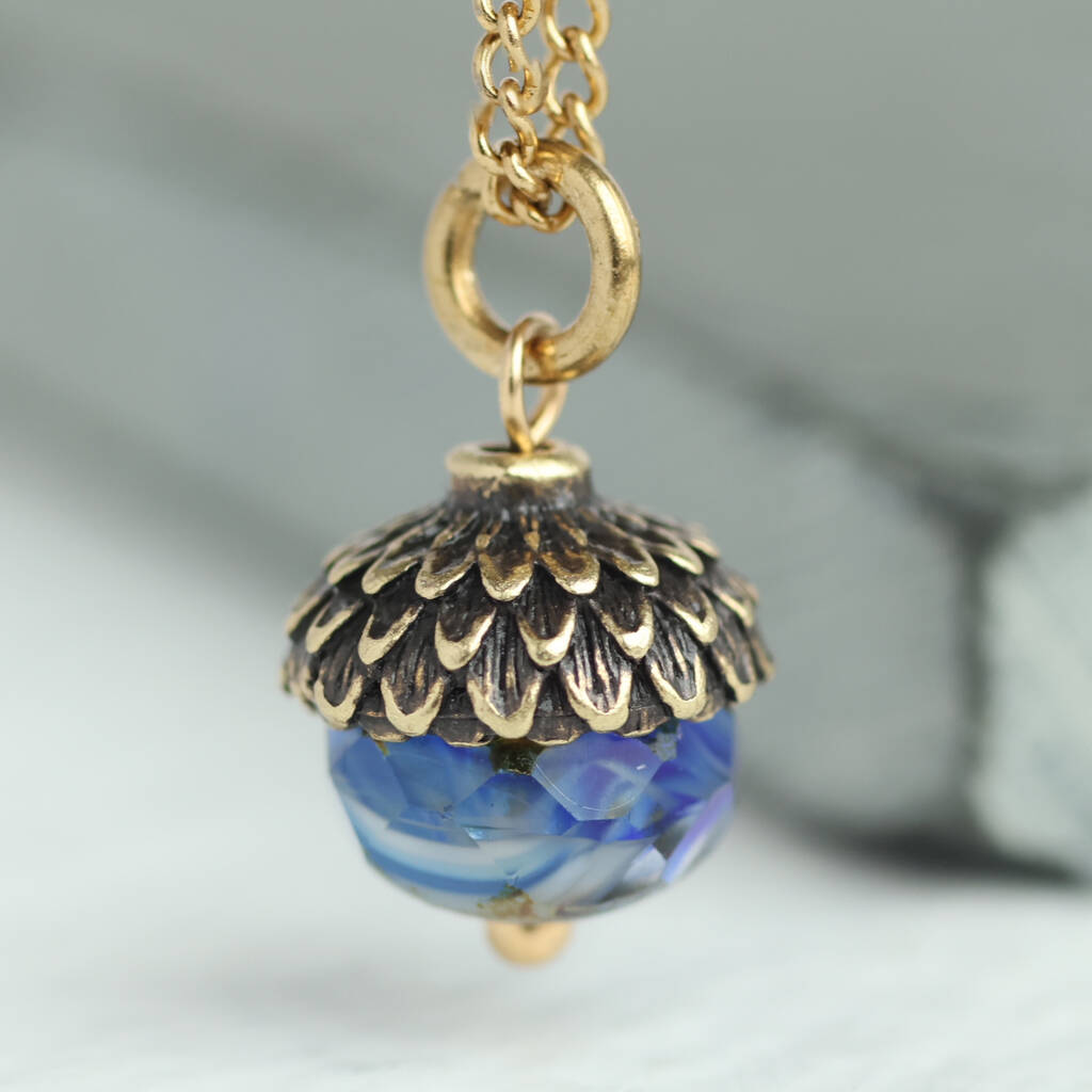 • Cobalt Blue Gold Acorn Necklace, thumbnail 7 of 7