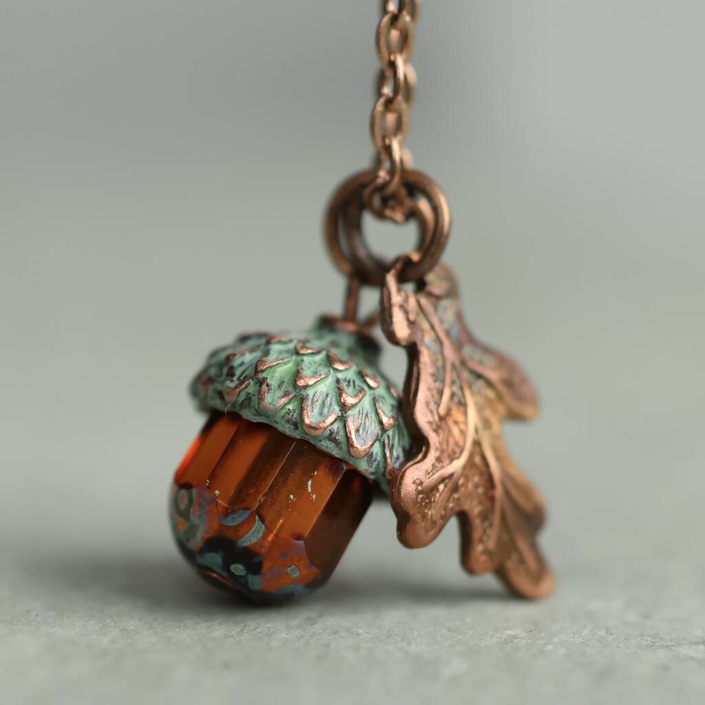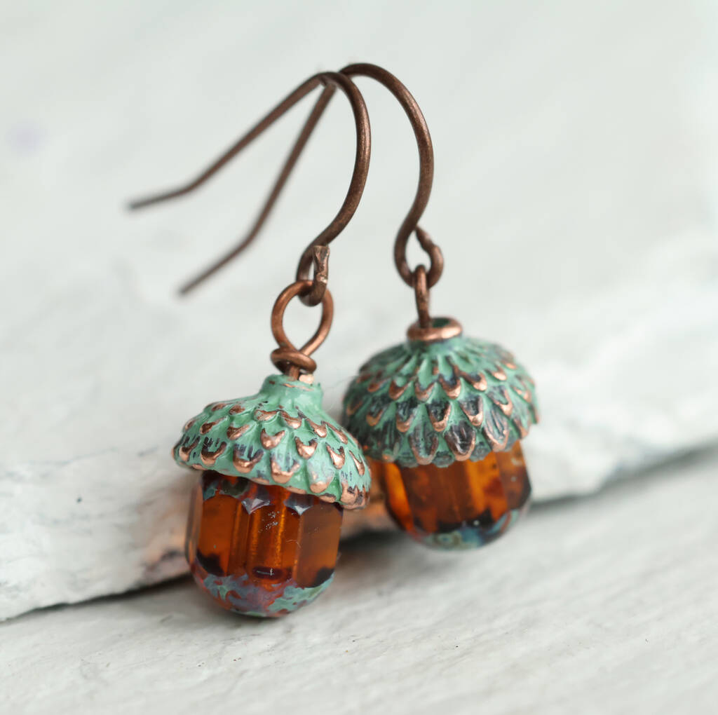 • Verdigris Amber Acorn Earrings, thumbnail 9 of 9