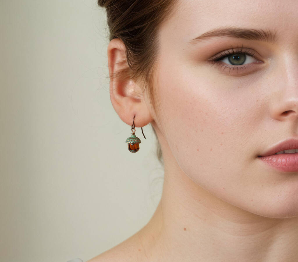 • Verdigris Amber Acorn Earrings, thumbnail 6 of 9