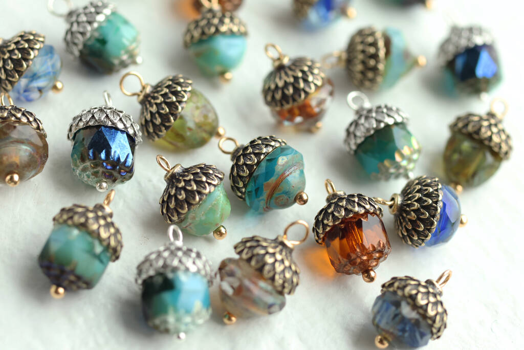 • Verdigris Amber Acorn Earrings, thumbnail 1 of 9