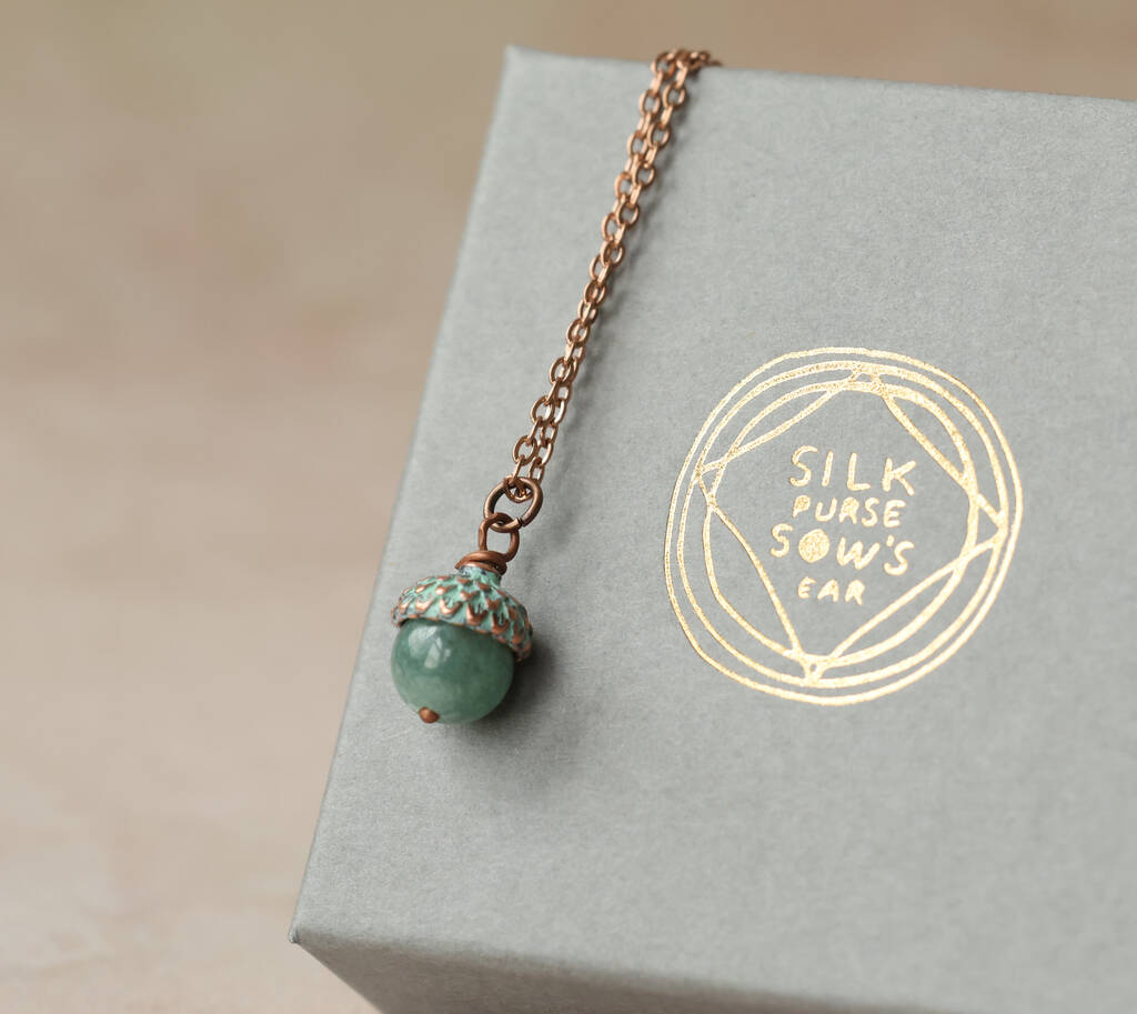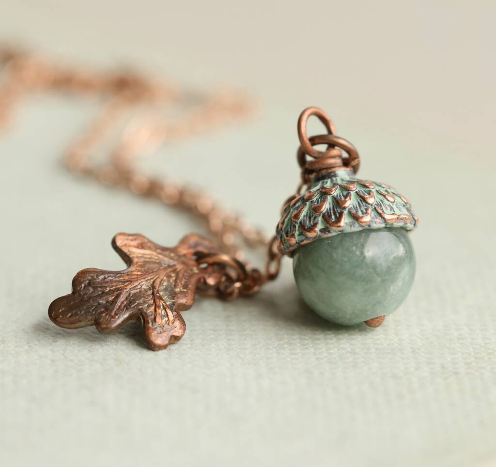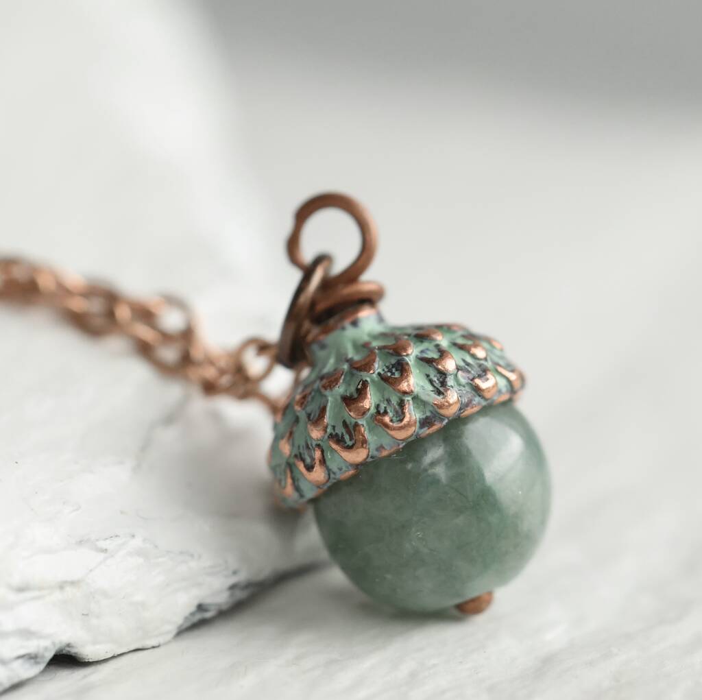 Verdigris Teal Gemstone Acorn Necklace