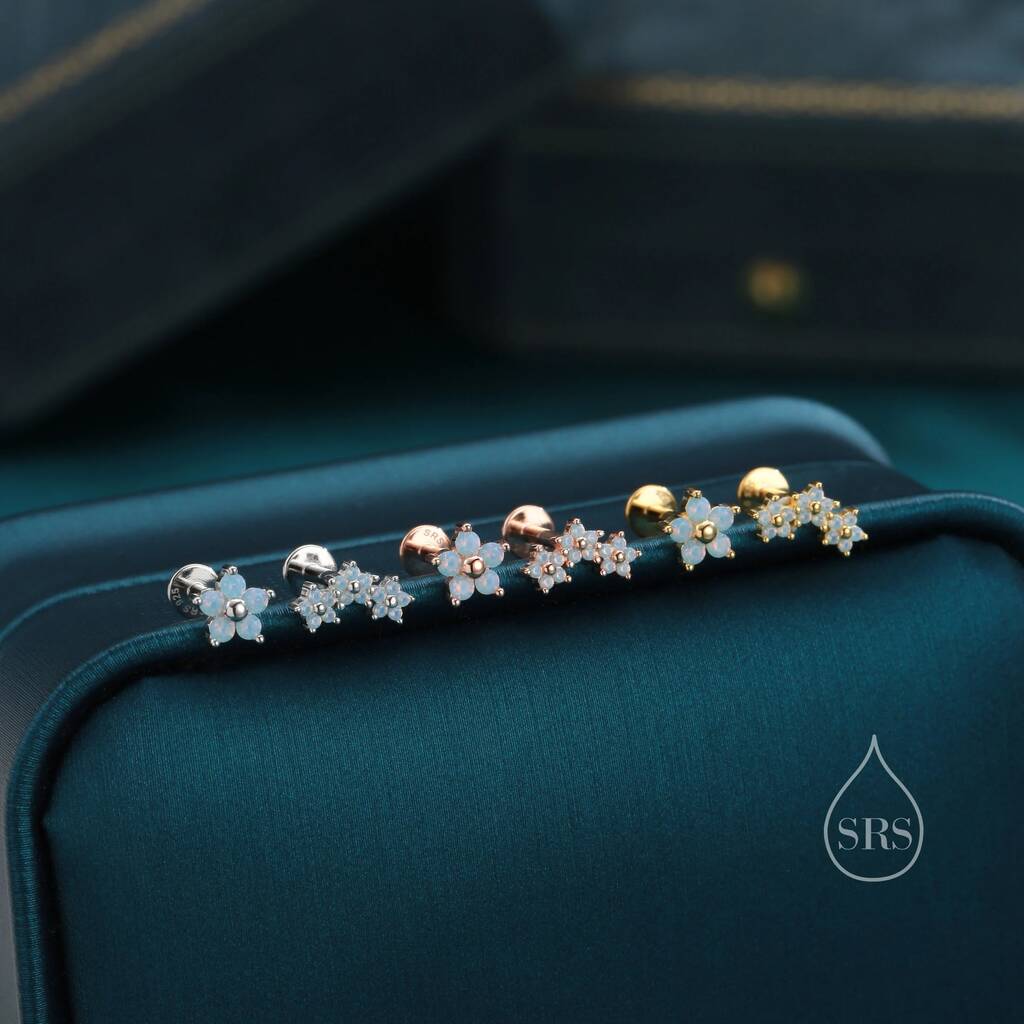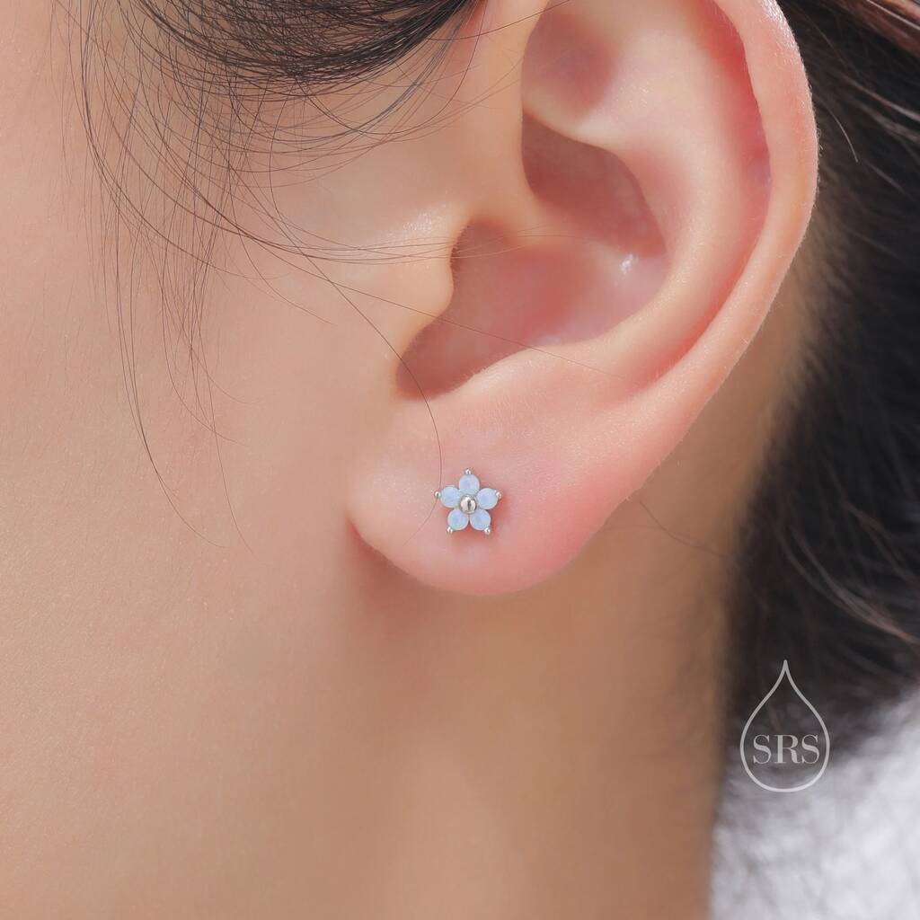 Asymmetric Blue Opal Cz Forget Me Not Flower Bouquet Internally Threaded Flat Back In Sterling Silver