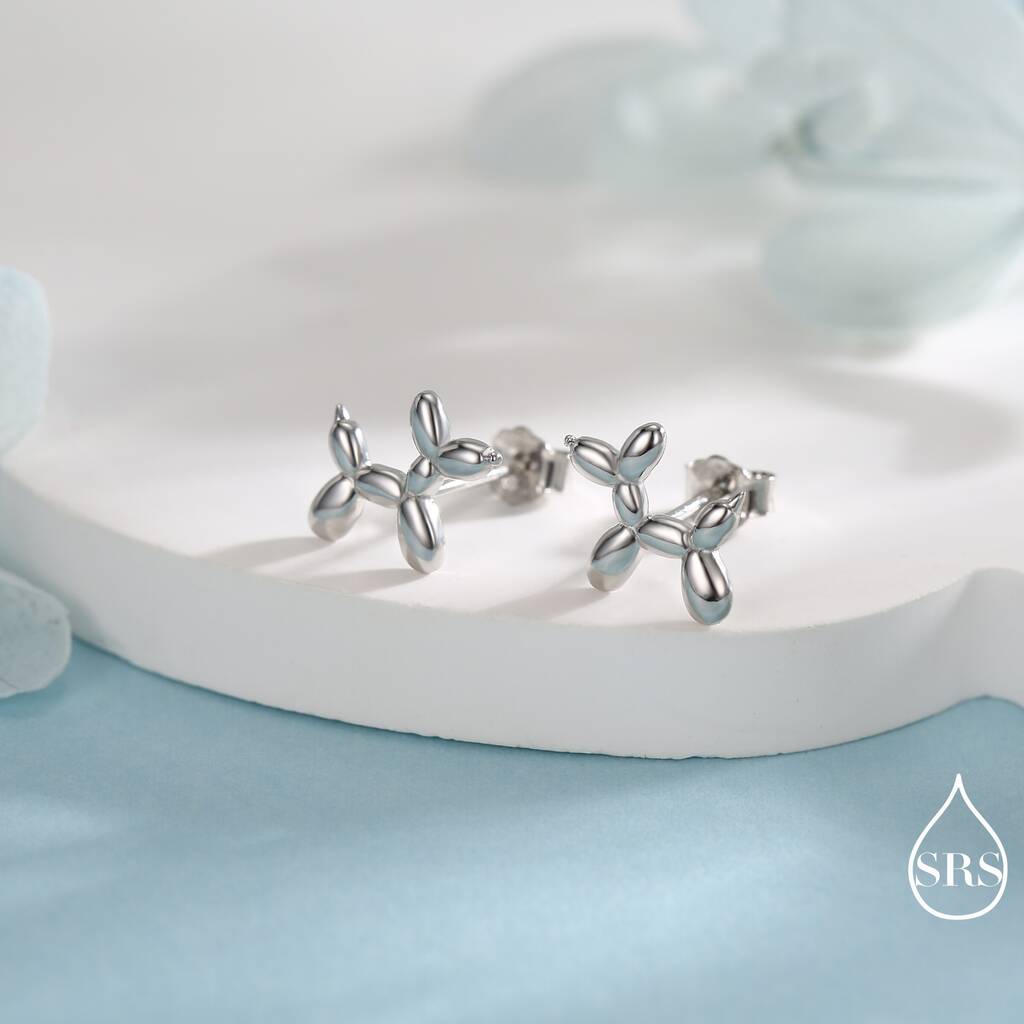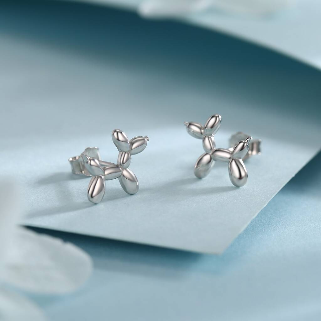 Add a playful twist to your style with Balloon-Dog Stud-Earrings in Sterling-Silver, quirky poodle-shaped earrings that bring a fun and artistic flair to any outfit.