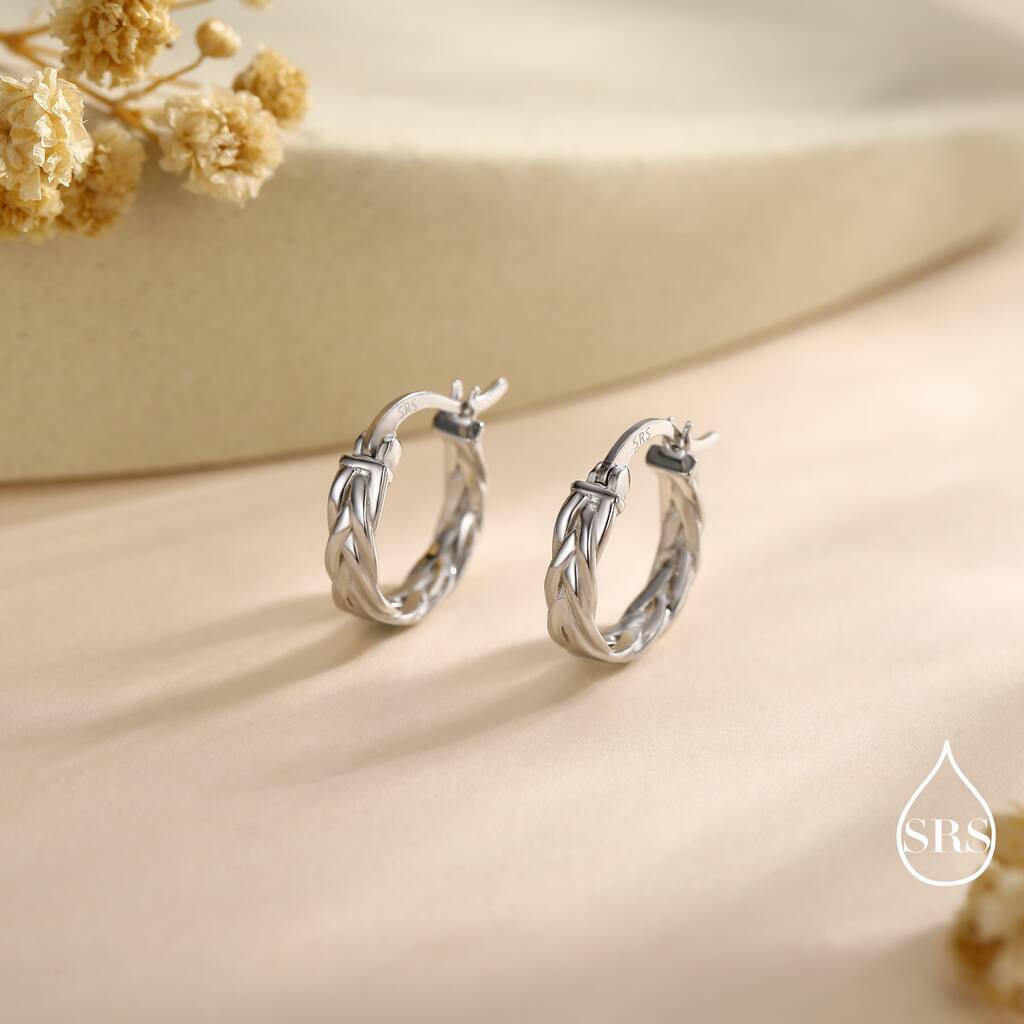 Elegant braided hoop earrings in sterling silver. Symbolize unity and timeless beauty. Ideal for adding a touch of sophistication daily or gifting with grace.