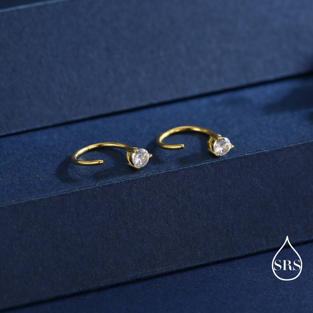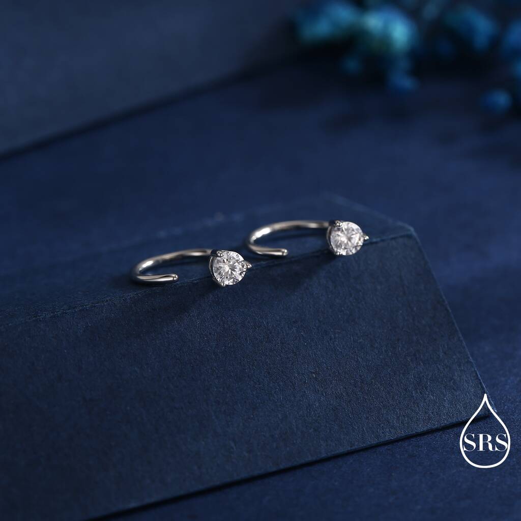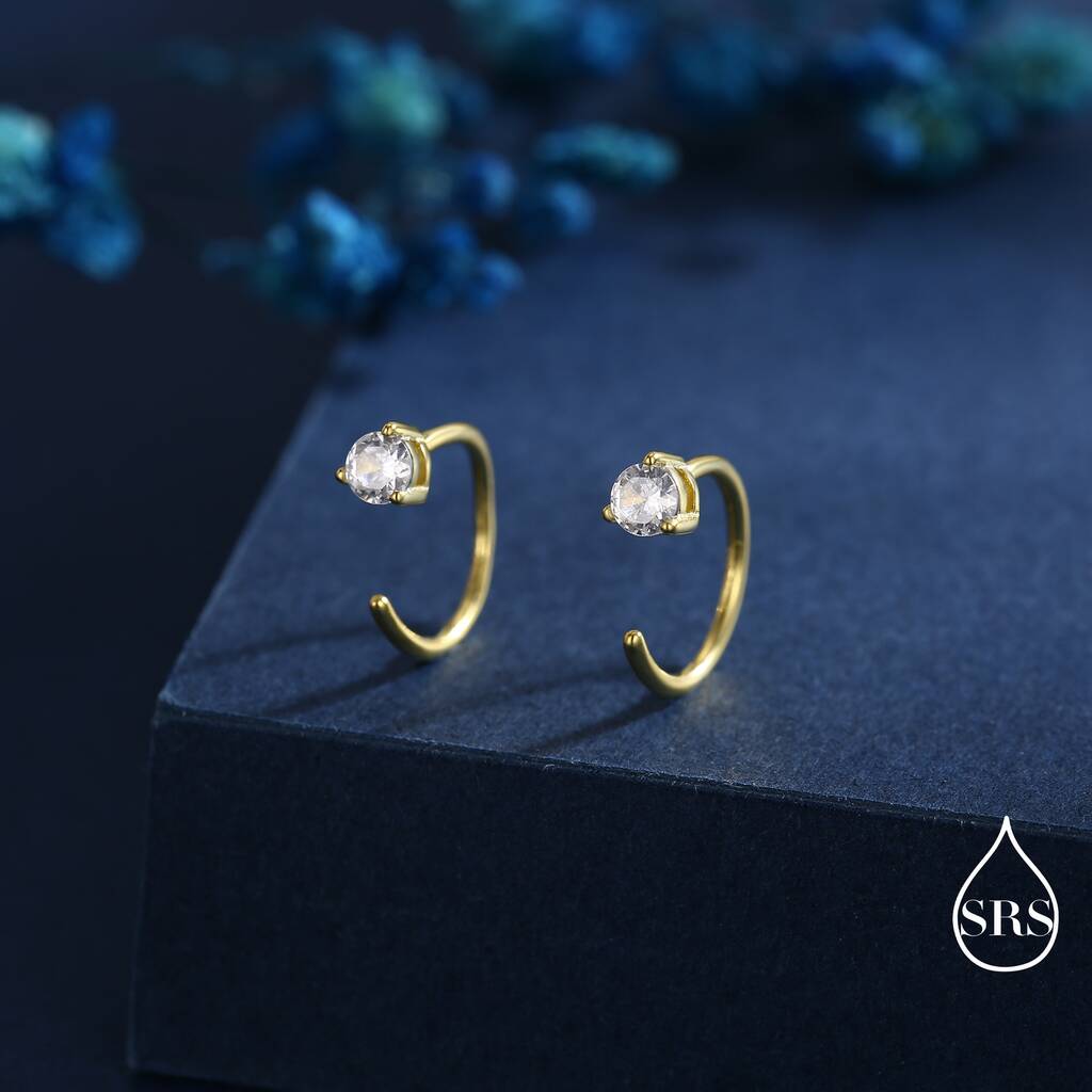 Stylish clear CZ dot huggie hoop earrings sterling-silver. Elevate your style with these subtle and elegant hoops. Perfect for adding sophistication or gifting timeless allure.