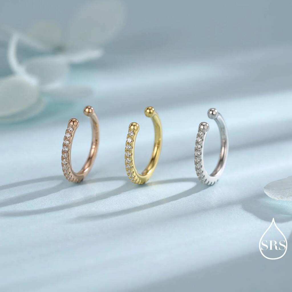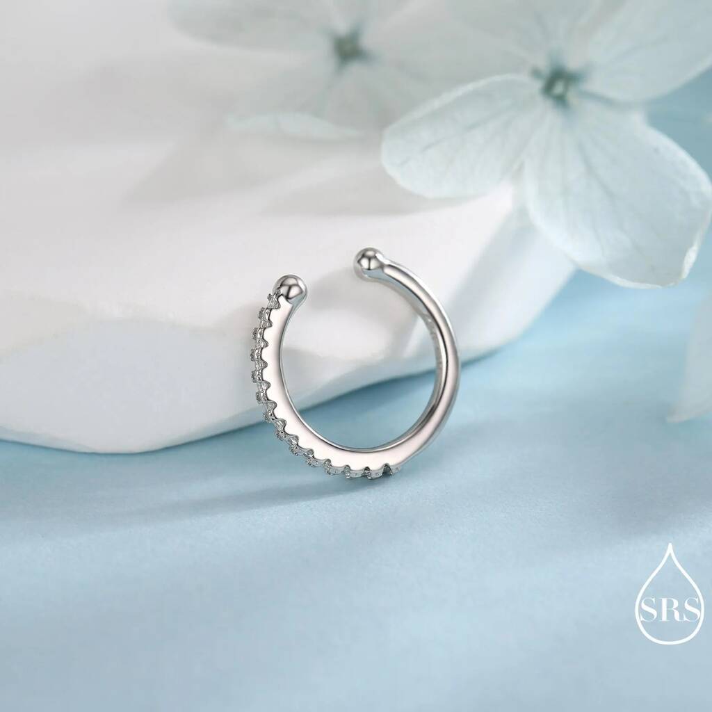 Sterling Silver CZ Ear Cuffs — sparkling cubic zirconia design, adding elegant charm and versatile style, perfect for a pierced-free, statement look.