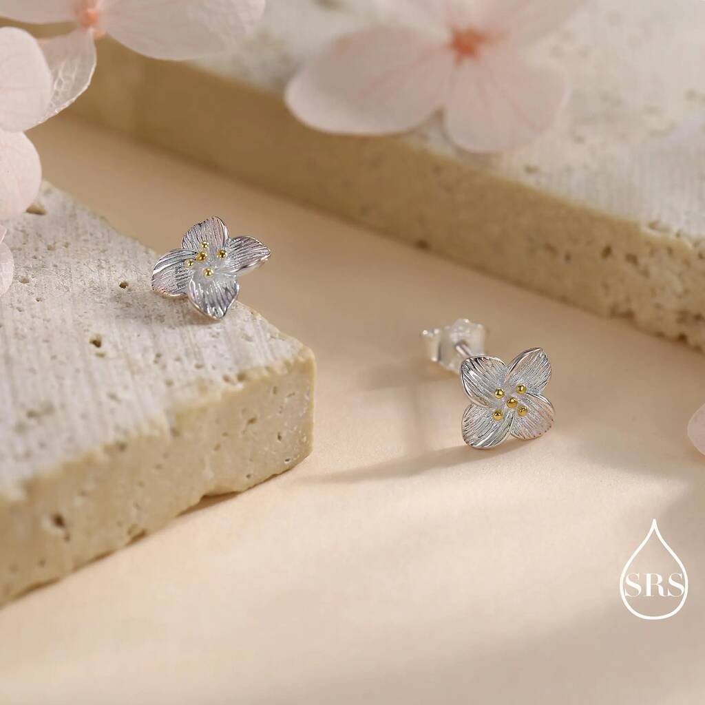 Enhance your elegance with our Dainty Flower Stud Earrings in Sterling Silver. These delicate studs add a touch of floral charm to any outfit.