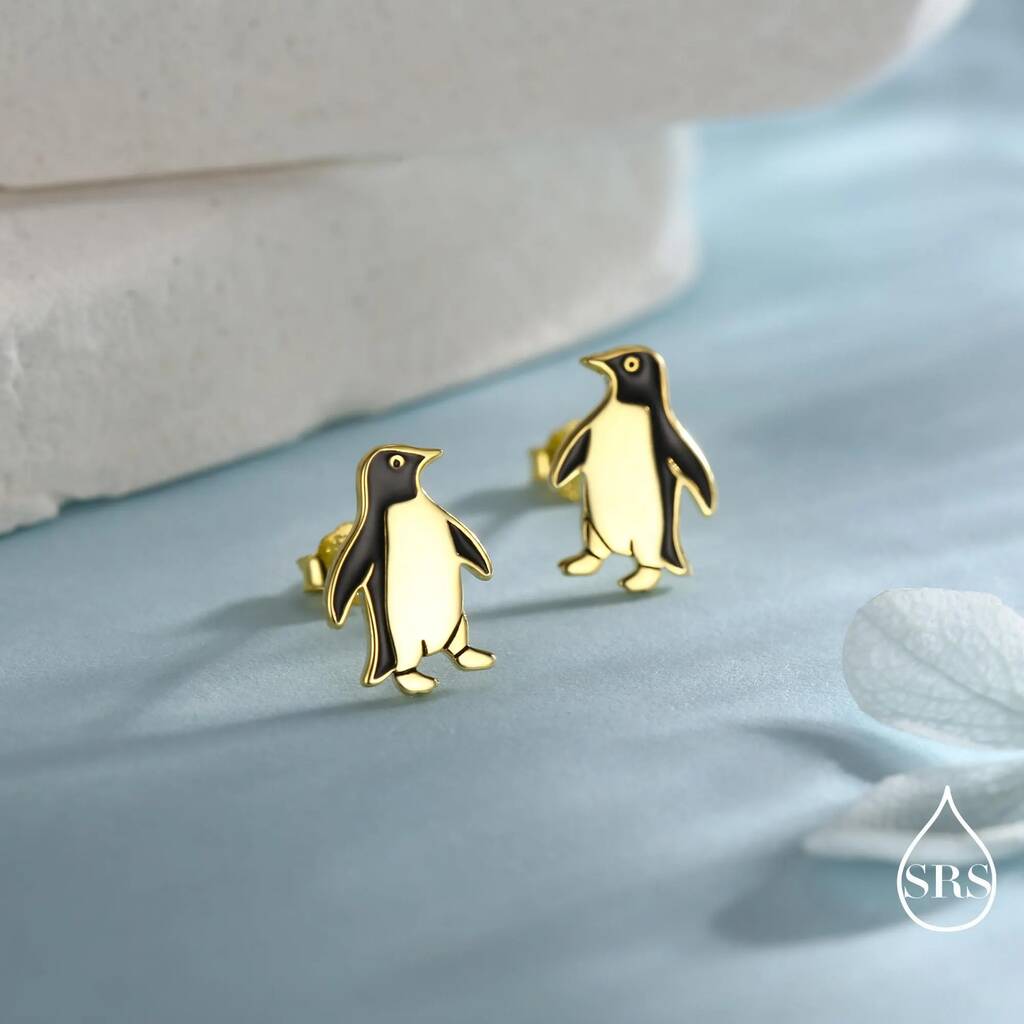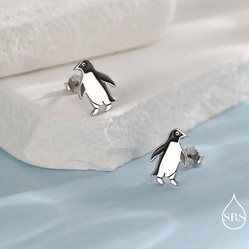 Enamel Penguin Stud Earrings In Sterling Silver, 1 of 11
