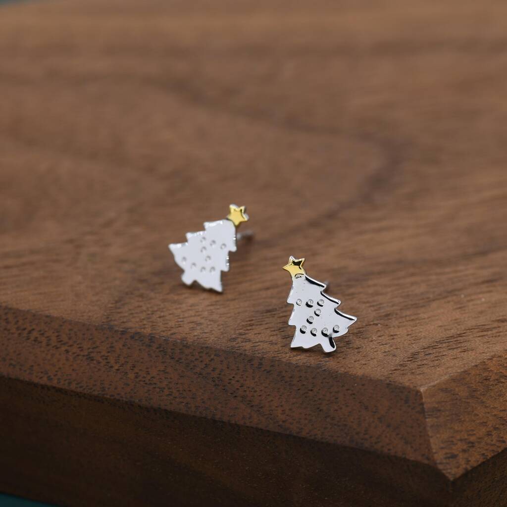 • Extra Tiny Christmas Tree Stud Earrings In Sterling Silver, thumbnail 11 of 12