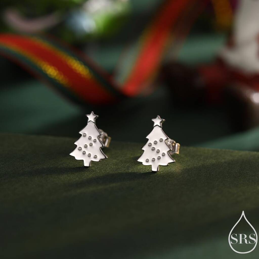 • Extra Tiny Christmas Tree Stud Earrings In Sterling Silver, thumbnail 10 of 12