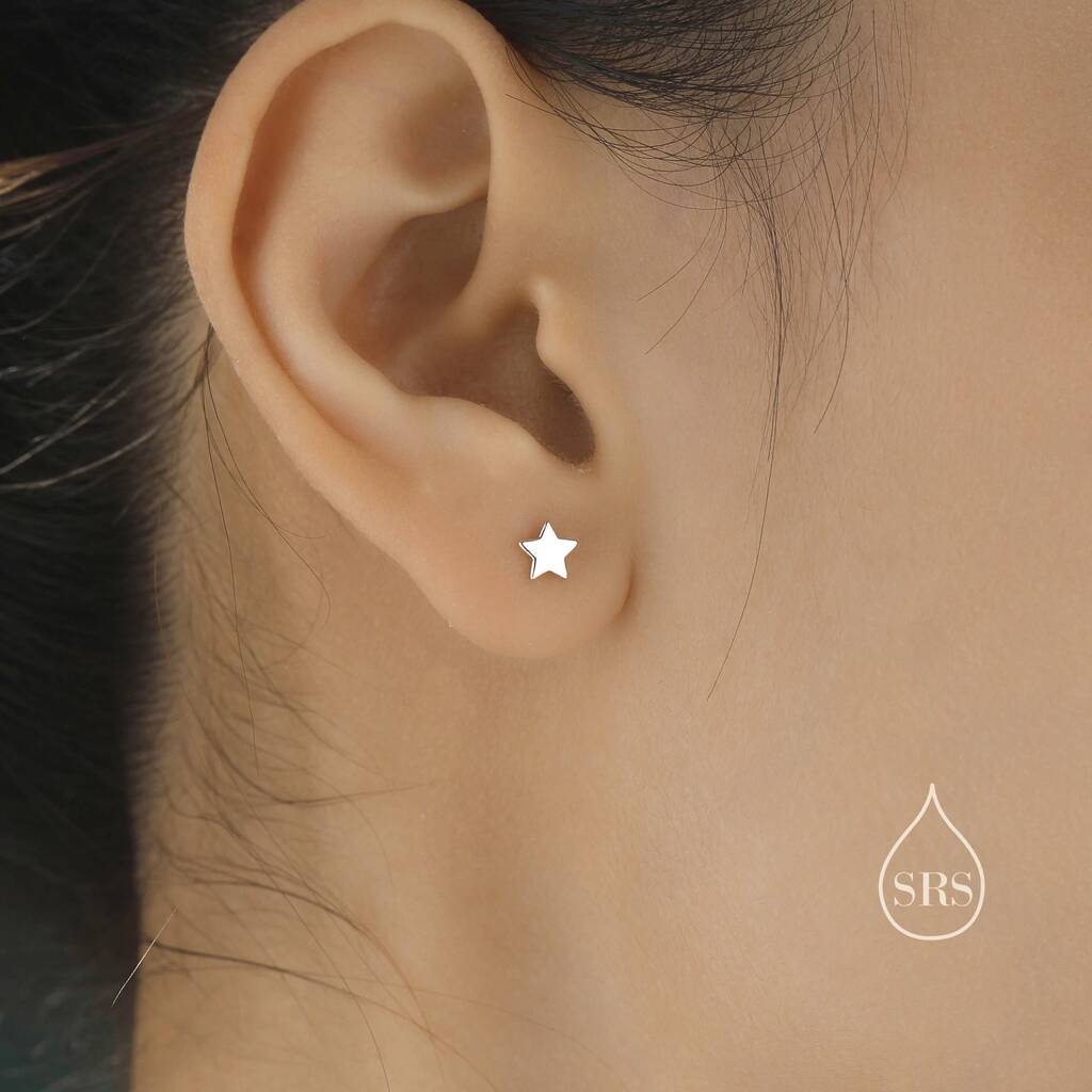 Enhance your style with our Internally Threaded Tiny Star Flat Back Earrings in Sterling Silver, featuring a sleek star design for a subtle, elegant touch.