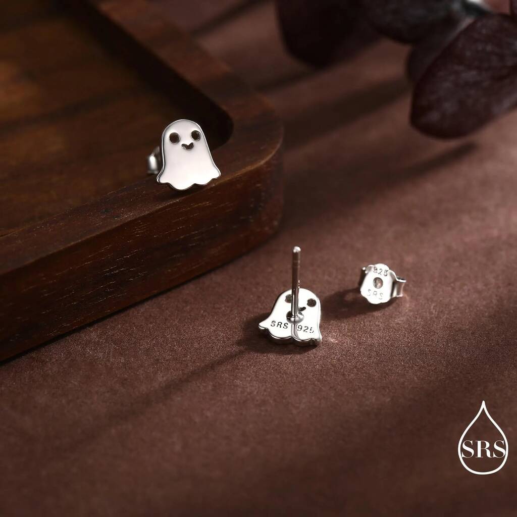 Little Cute Ghost Stud Earrings In Sterling Silver