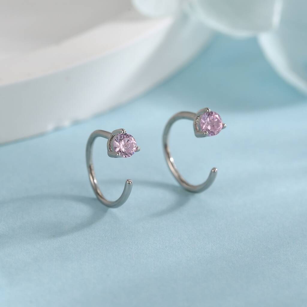 Minimalist Pink Cz Crystal Huggie Hoop Threader Earrings In Sterling Silver, 1 of 11