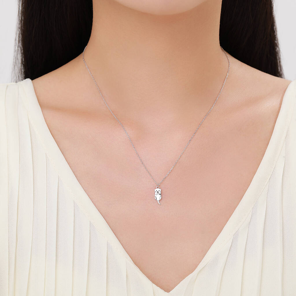 Sterling silver necklace and stud earrings featuring adorable otter designs, adding playful charm, subtle-elegance, and a unique, heartwarming touch to everyday wear or thoughtful gifting.