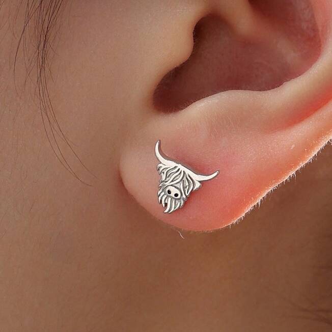 Sterling Silver Scottish Highland Cow Stud Earrings