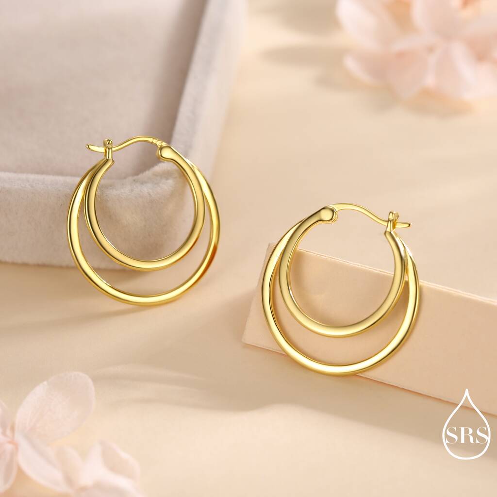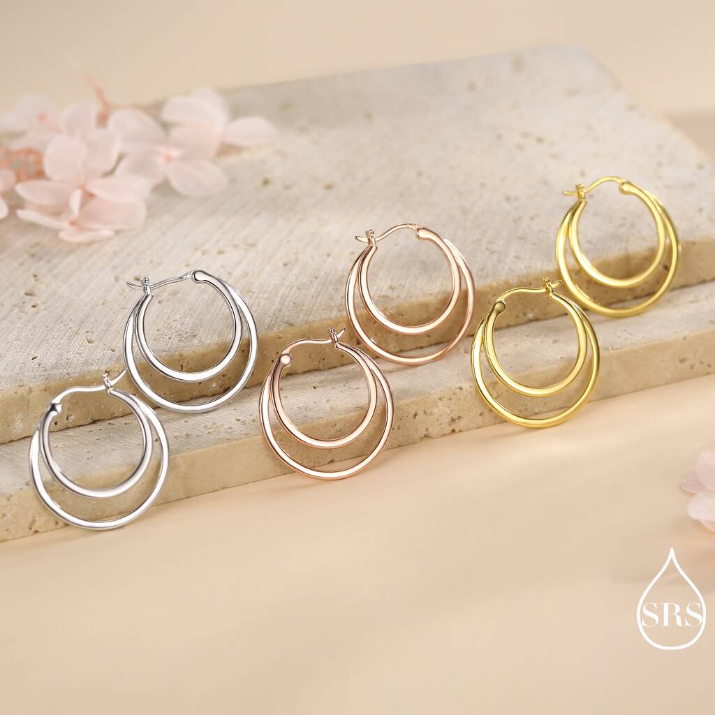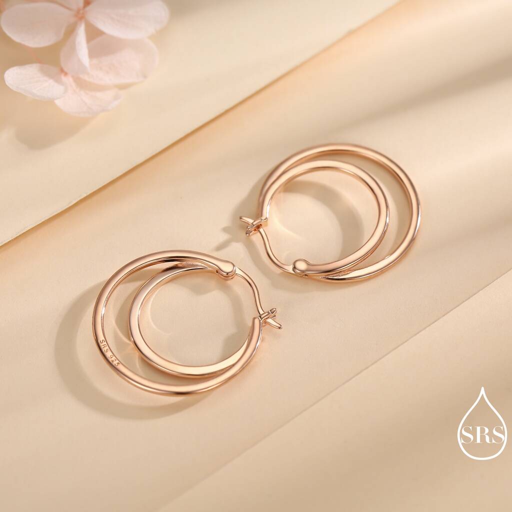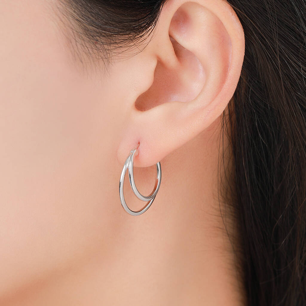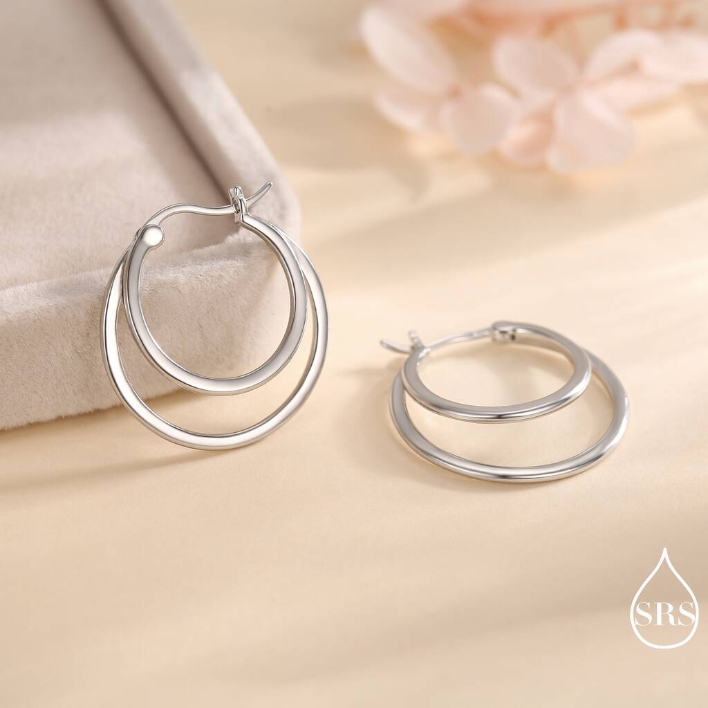 Sterling silver earrings featuring a single piercing double large hoop design, adding modern elegance, bold-style, and a sleek, fashionable touch to everyday wear or special-occasions.