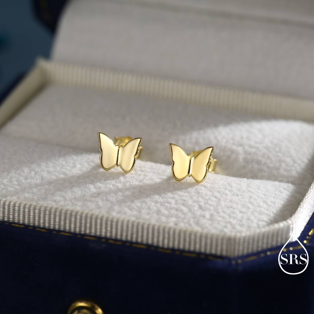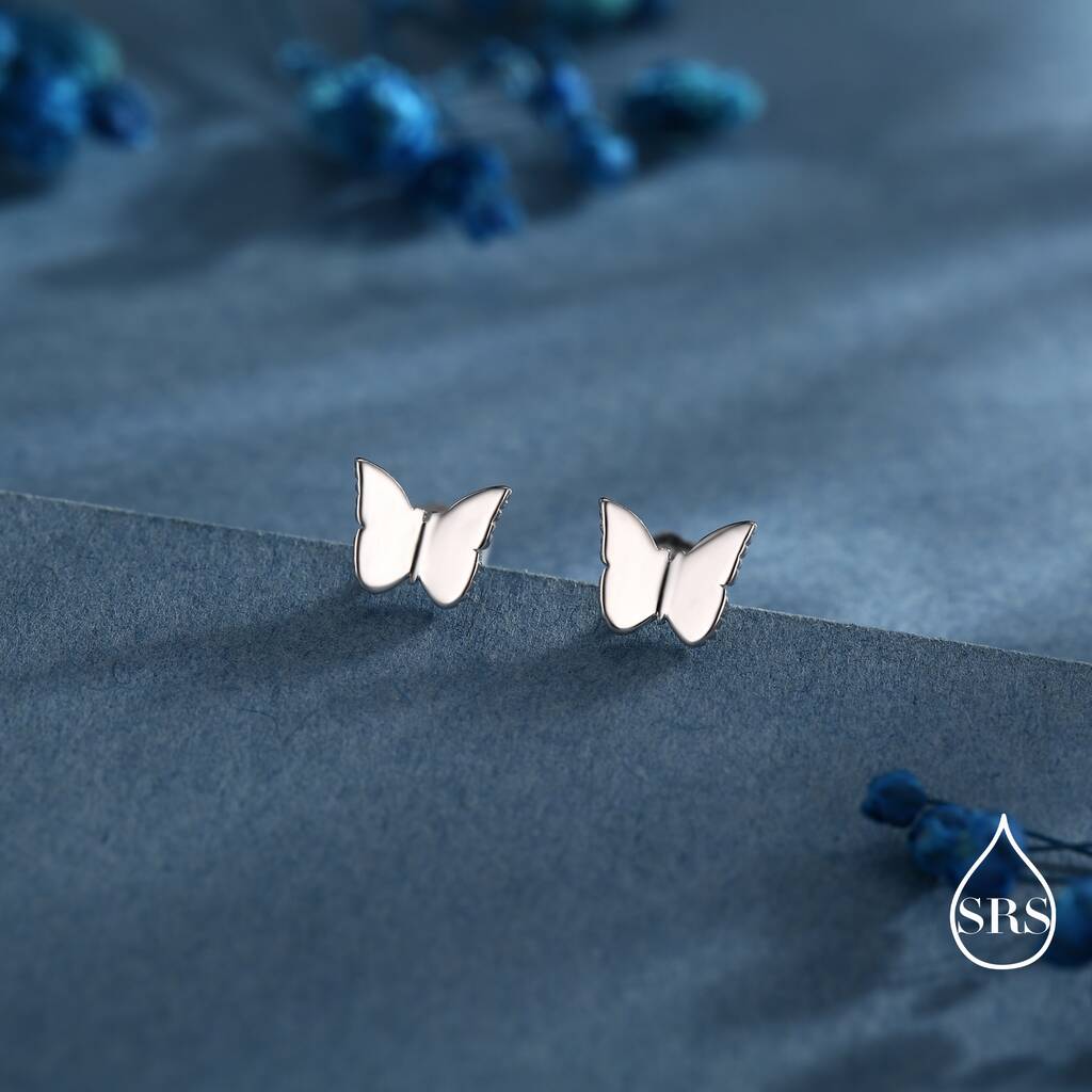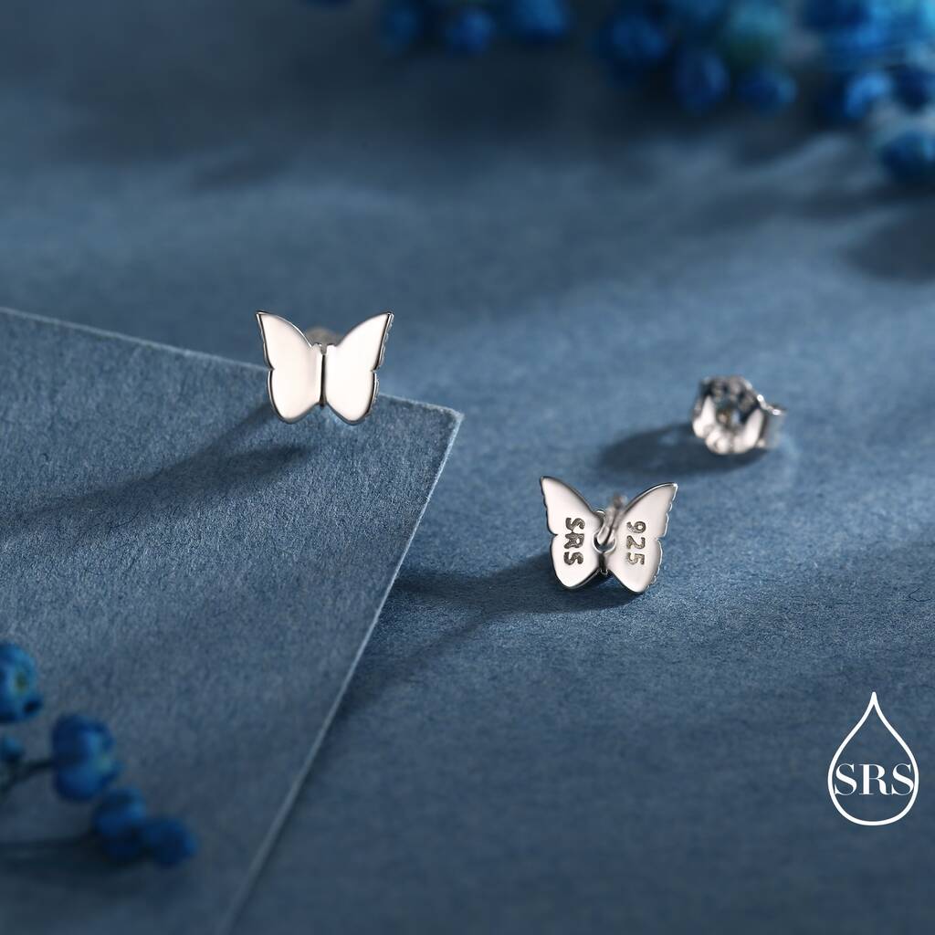 Add a touch of delicate charm with our Small Pair Butterfly Stud Earrings in Sterling-Silver, perfect for a subtle and elegant accent to any outfit.