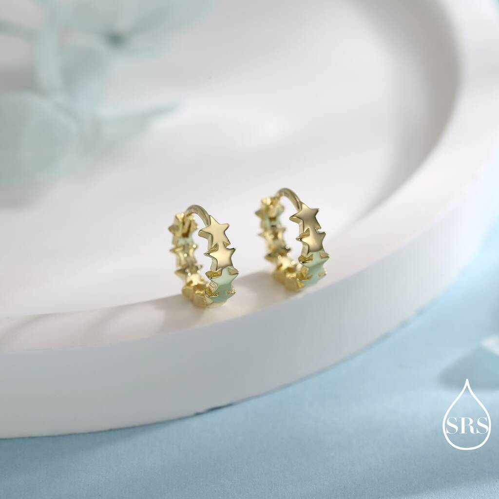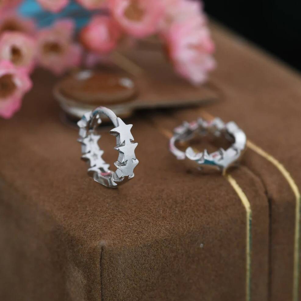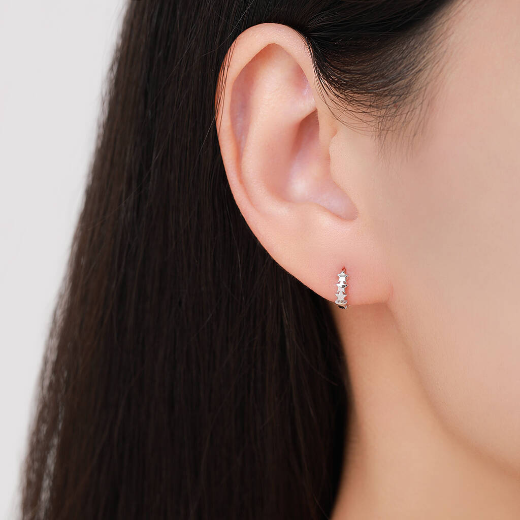 Star Motif Huggie Hoop Earrings In Sterling Silver