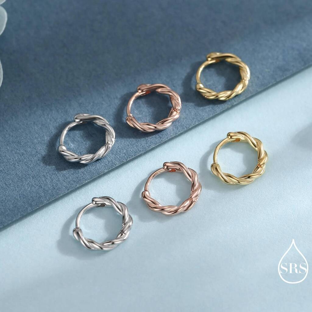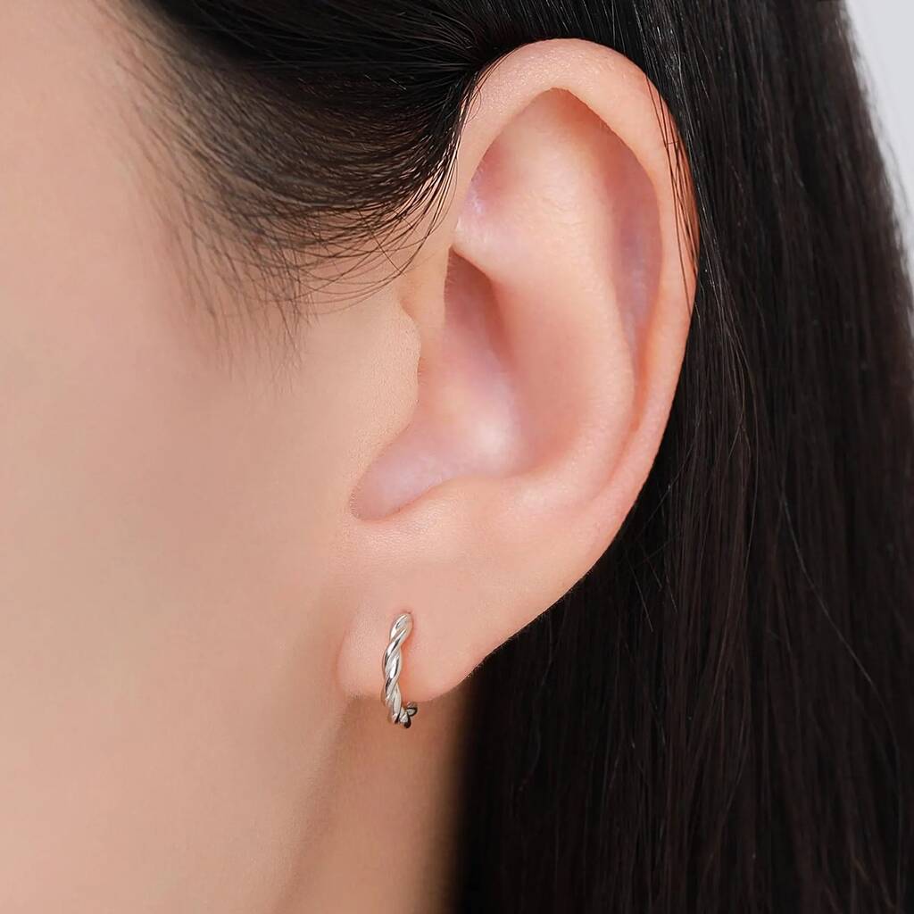 Sterling Silver Dainty Hoop Earrings With Braided Details