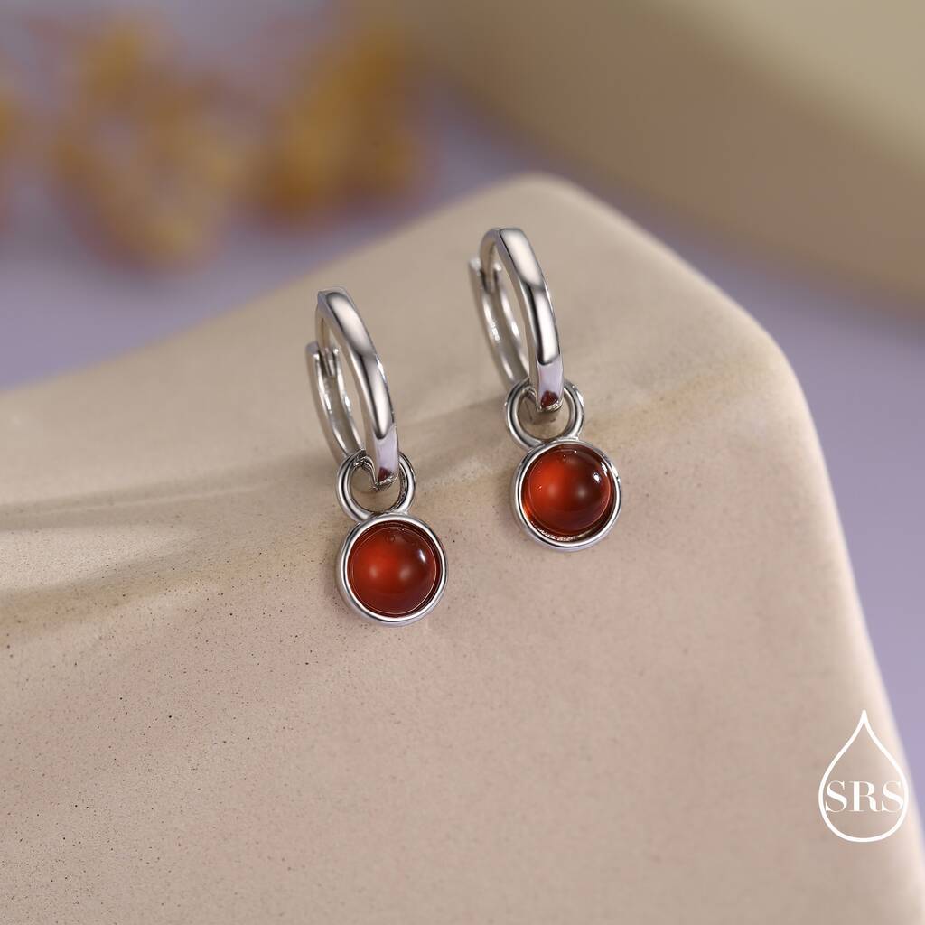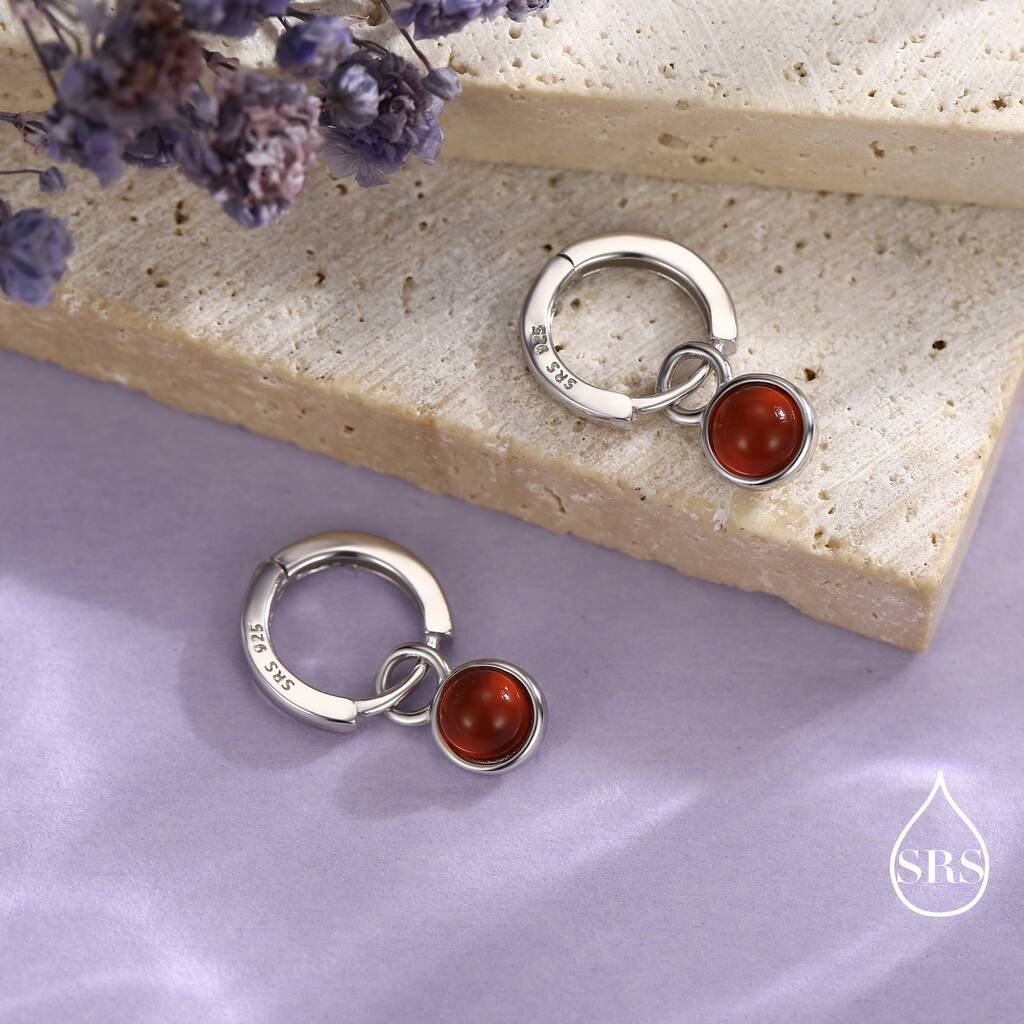 Sterling Silver Dangling Red Onyx Hoop Earrings, 1 of 12