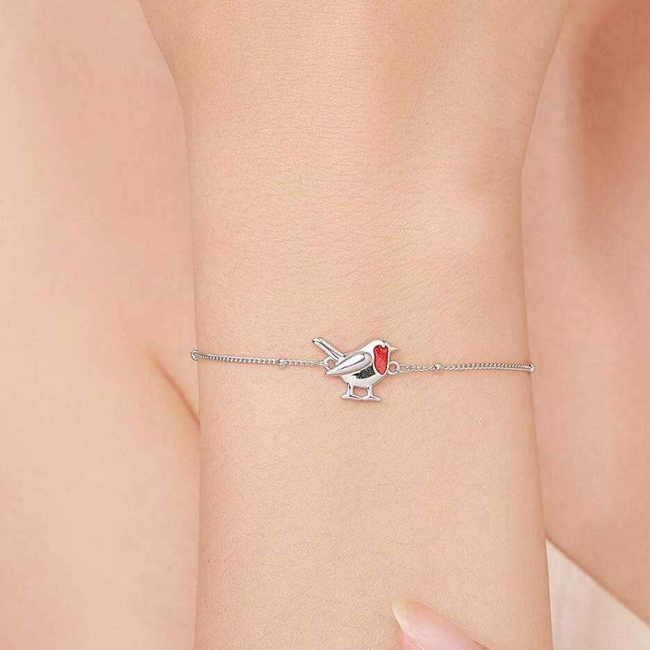 Sterling Silver Delicate Robin Bird Bracelet features charming, nature-inspired design, adding a subtle and elegant touch to everyday wear.