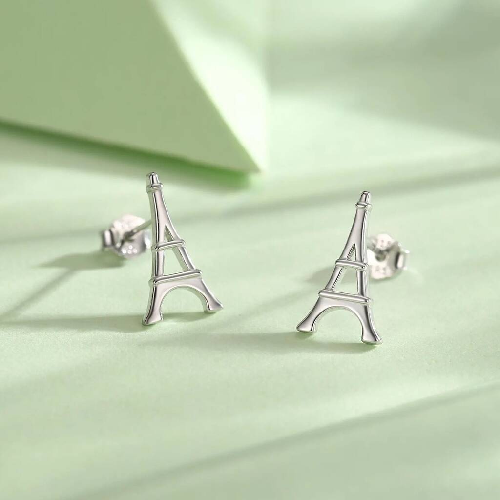 Sterling Silver Eiffel Tower Stud Earrings, 1 of 12