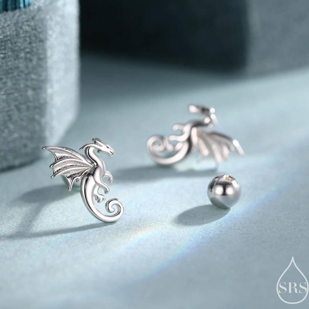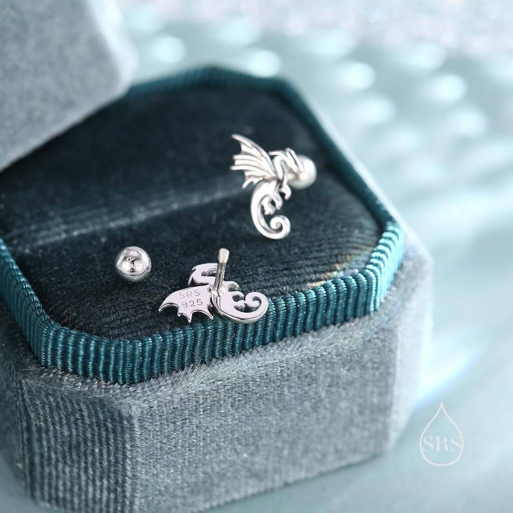 Sterling Silver Extra Small Dragon Earrings: Bold and compact, these sterling silver dragon earrings offer versatile wear with screw-back, flat-back, or stud options.