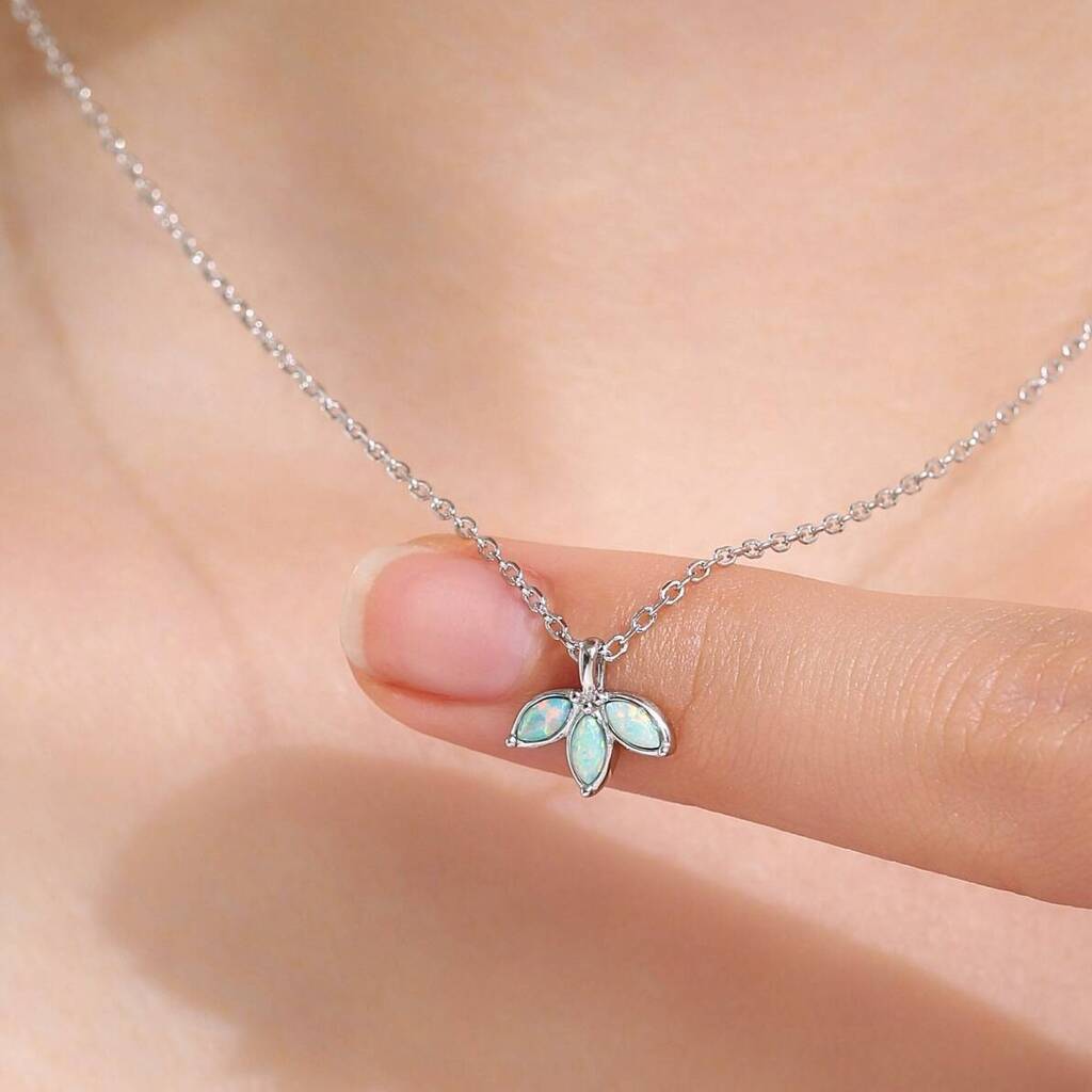 Sterling Silver Extra Tiny Green Opal Marquise Leaf Pendant Necklace