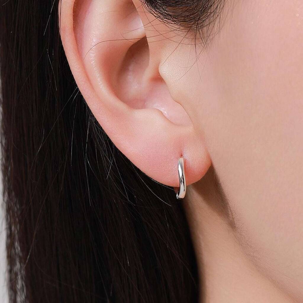 Sterling Silver Irregular Shaped Minimalist Huggie Hoop Earrings