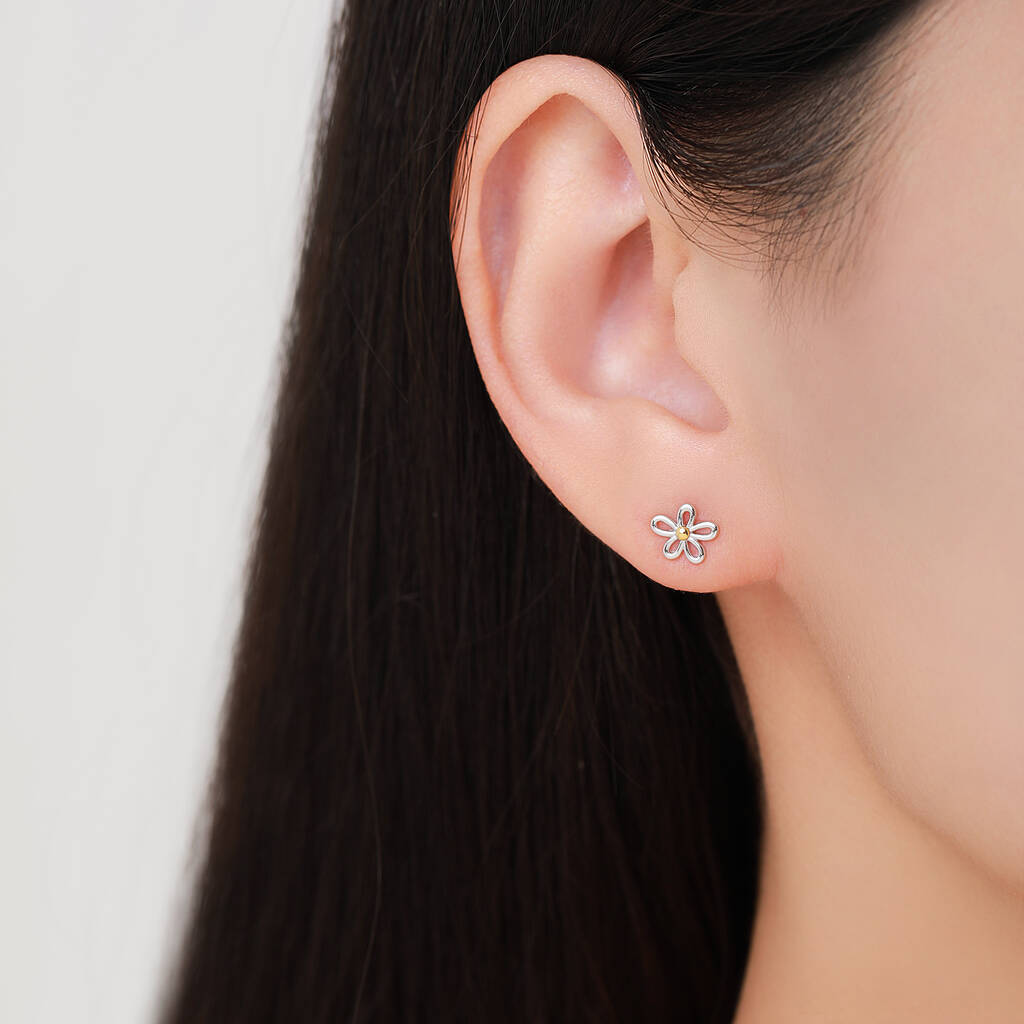 Sterling Silver Little Forget Me Not Flower Blossom Pendant Necklace And Stud Earrings