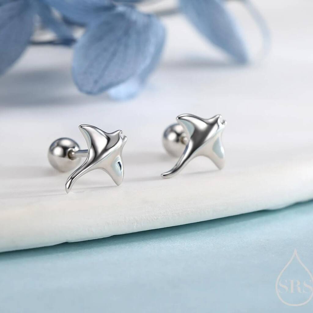 Sterling Silver Manta Ray Screw Back Earrings, 1 of 10