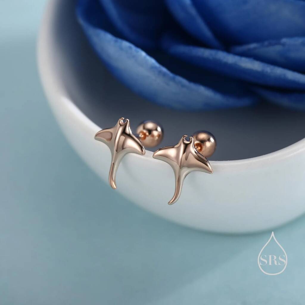 • Sterling Silver Manta Ray Screw Back Earrings, thumbnail 8 of 10