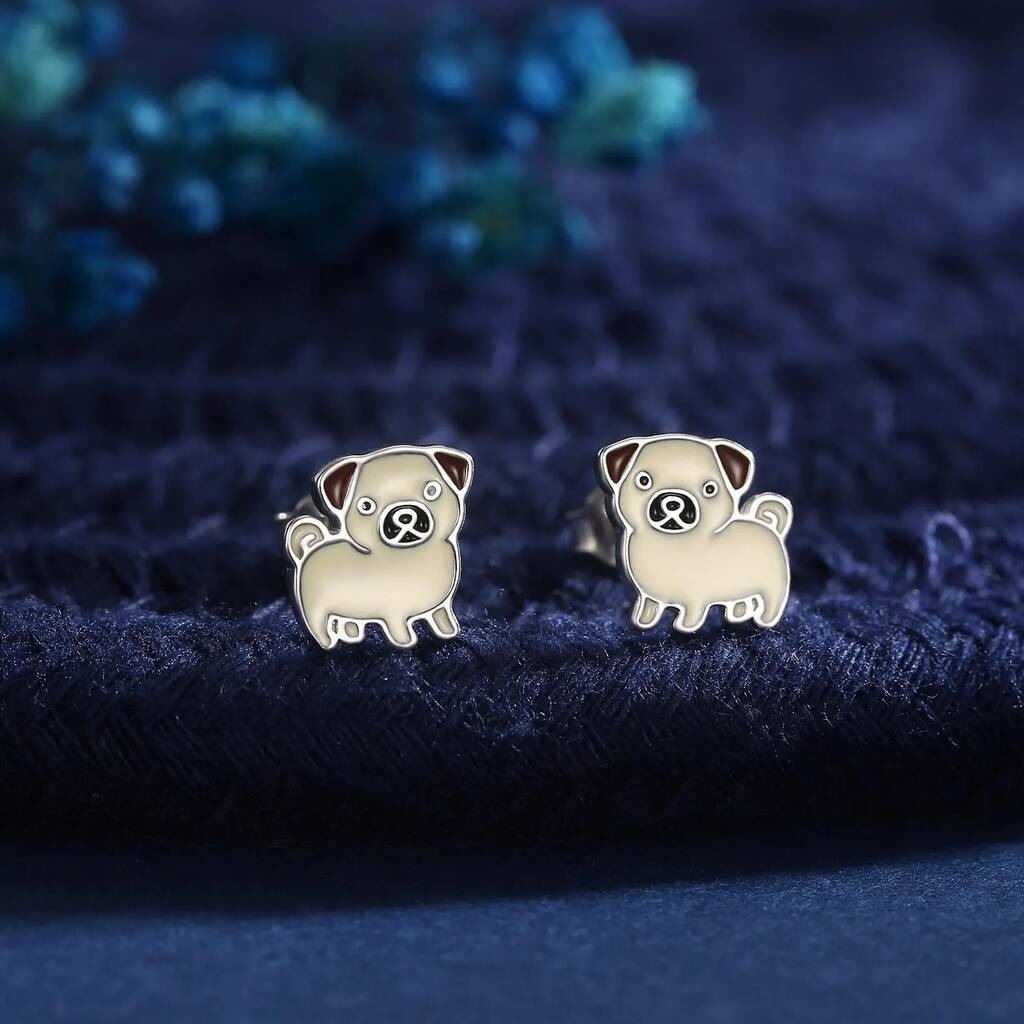 Sterling silver studs featuring adorable pug designs, adding playful charm, subtle shine, and a delightful, stylish touch to everyday wear or thoughtful gifting.