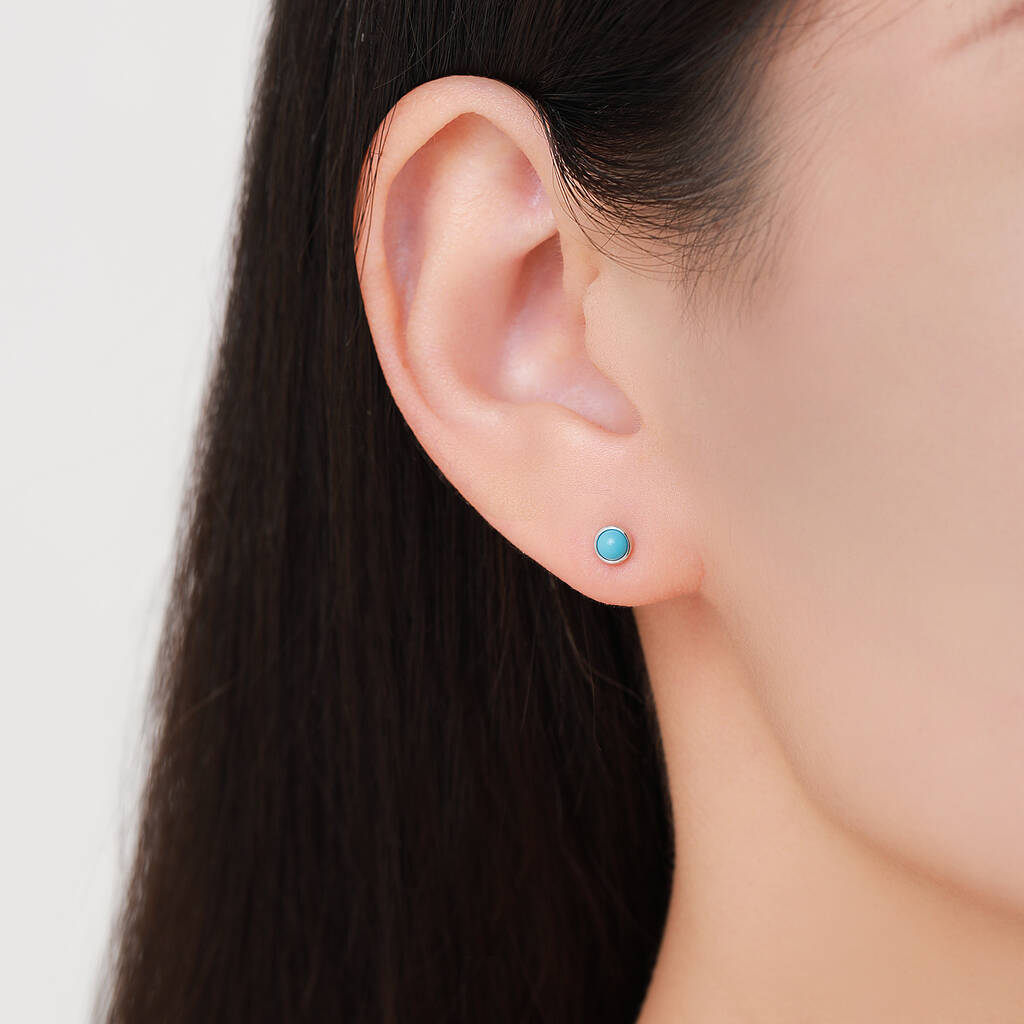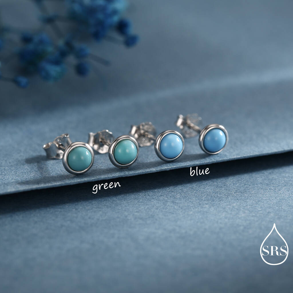 Sterling Silver Turquoise Stud Earrings, 3mm Or 4mm, Blue Or Green Turquoise Gemstone