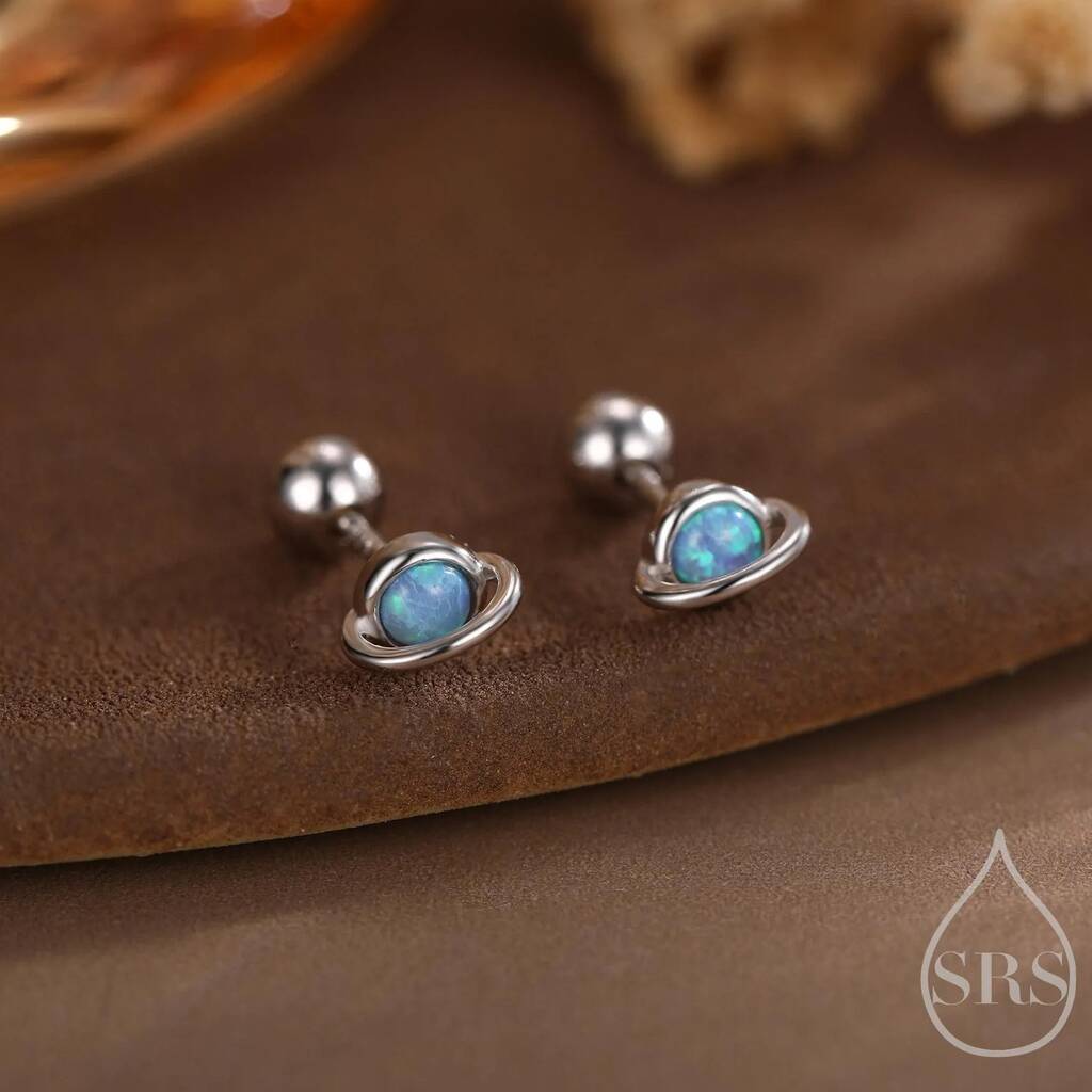 Secure, celestial-inspired studs featuring sparkling blue opals, adding playful charm and subtle elegance to your everyday or special outfits.
