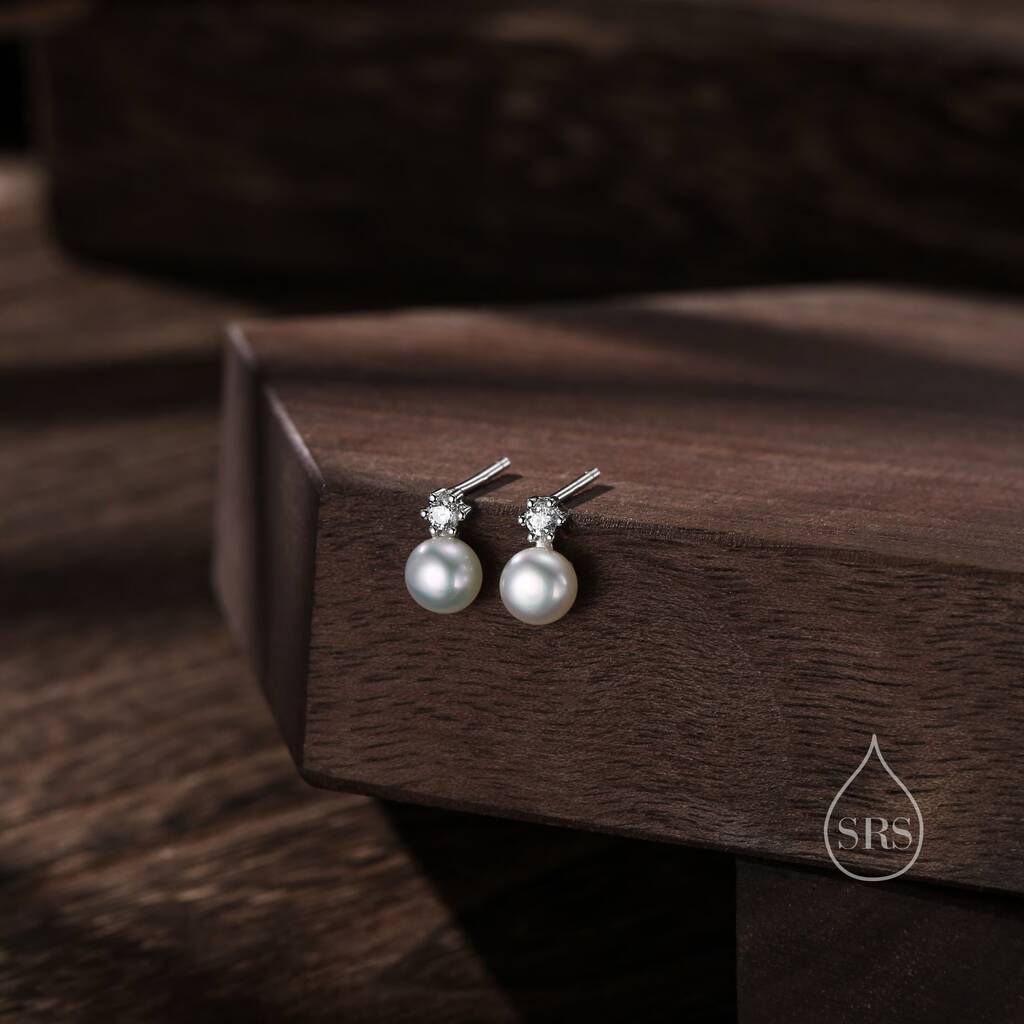 Delicate sterling silver tiny genuine pearls accented with CZ and secure screw backs, adding timeless elegance and a refined, stylish touch to everyday wear.