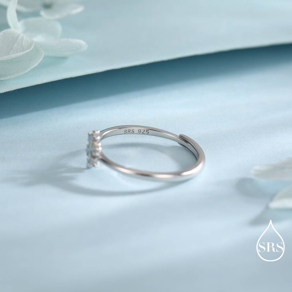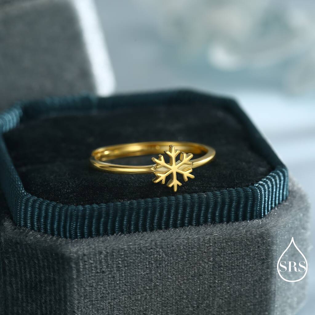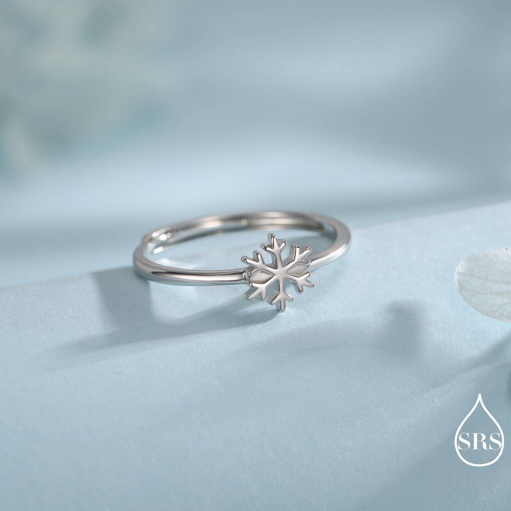 Delicate sterling silver ring featuring a tiny snowflake design, adding subtle elegance, winter-inspired charm, and a refined, stylish touch to everyday wear or gifting.