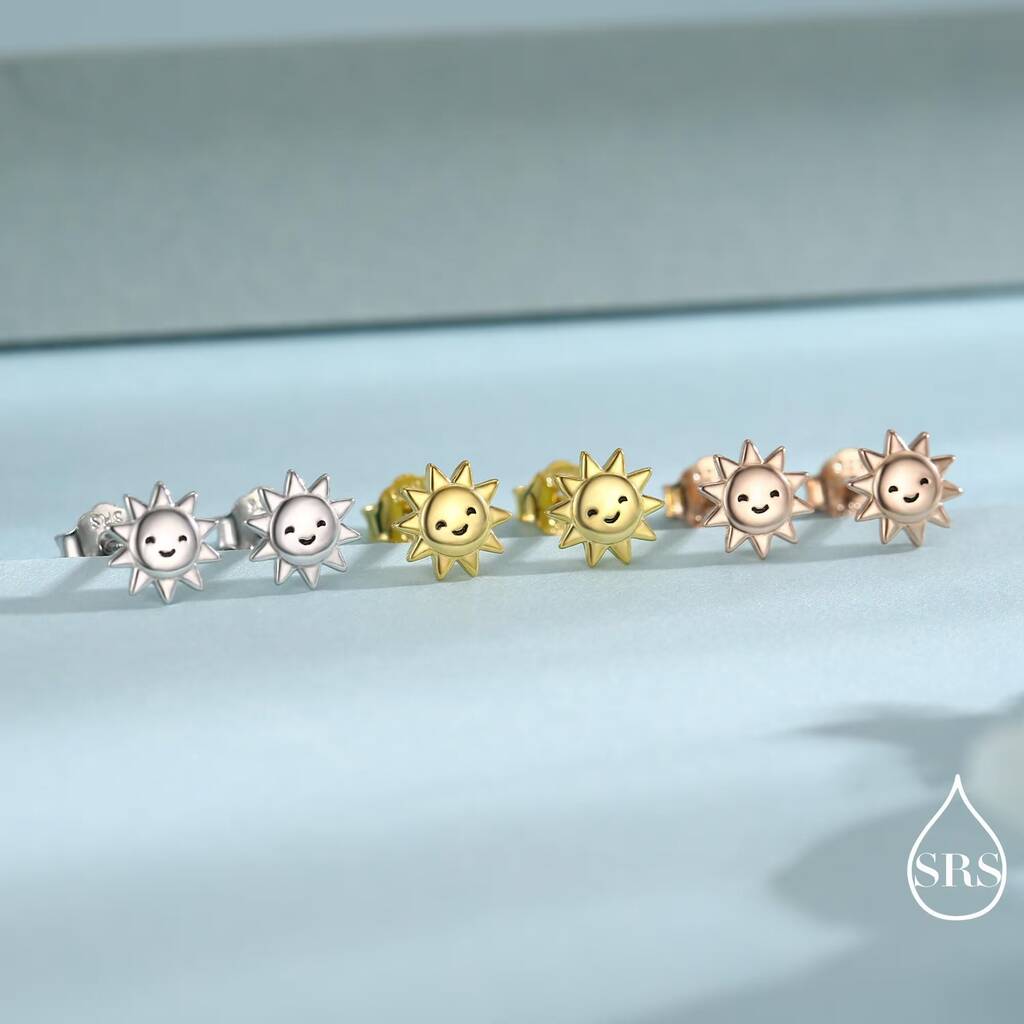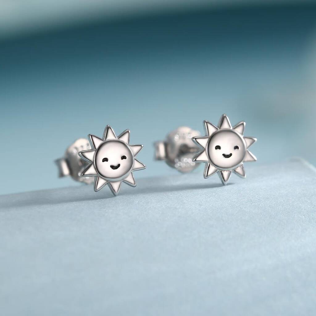 Sterling silver studs featuring tiny sun designs, adding radiant charm, subtle shine, and a warm, stylish touch to everyday wear or thoughtful gifting.