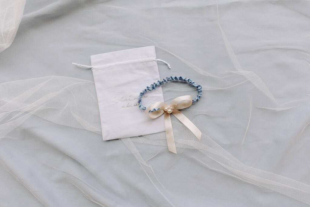 Personalised Pearl Cluster Blue Wedding Garter