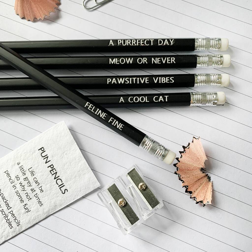 Funny Cat Lover Pencil Set Gift | Pun Collection, Feline Fine