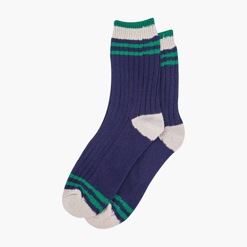 Glitter Mid Calf Ribbed Cotton Socks Varsity Striped Cuff Navy Green