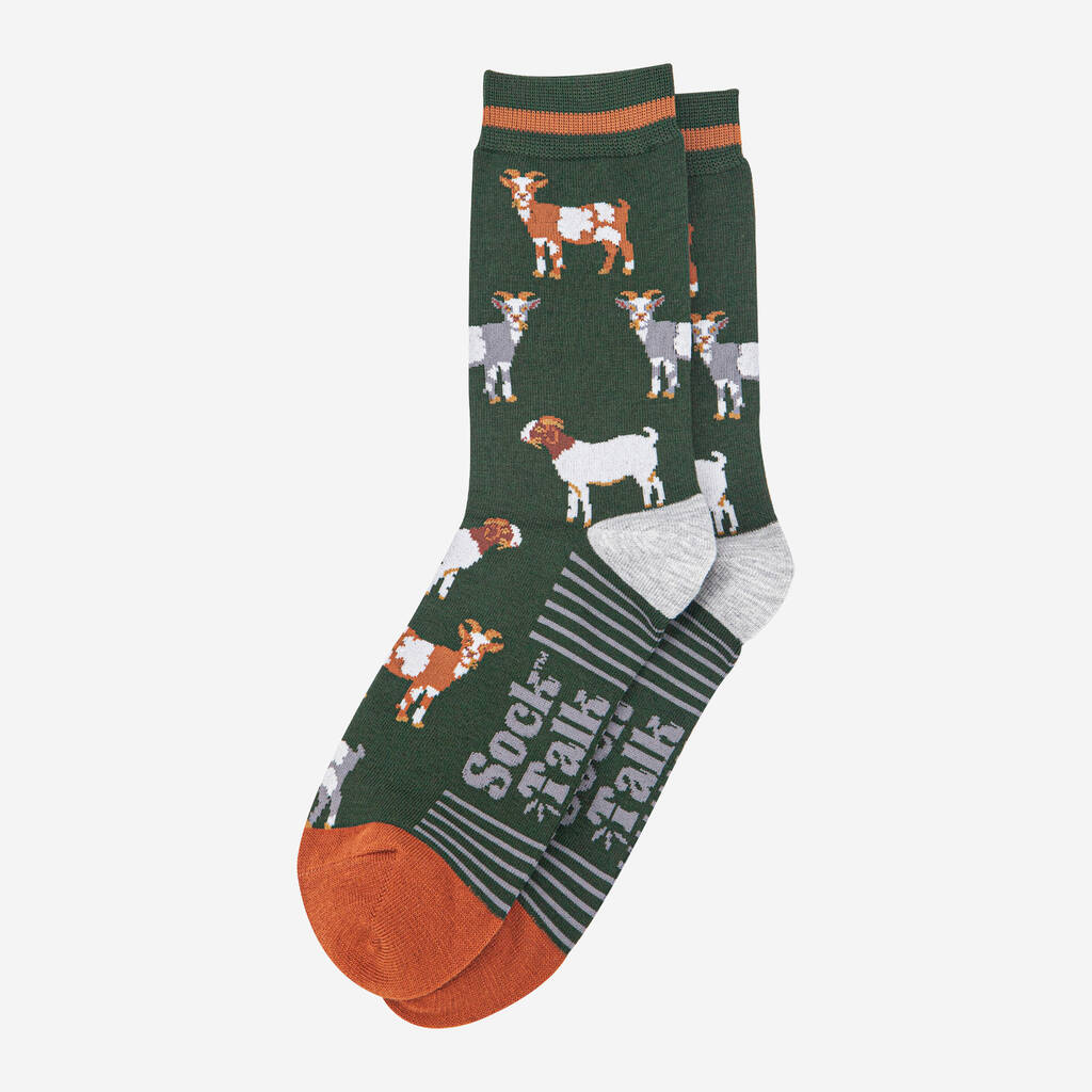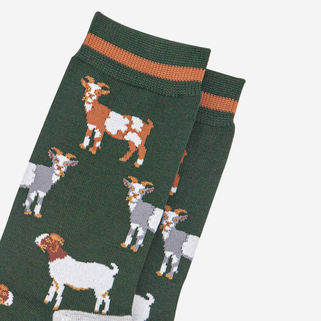 Goat Farm Animals Bamboo Socks Men's Khaki Green