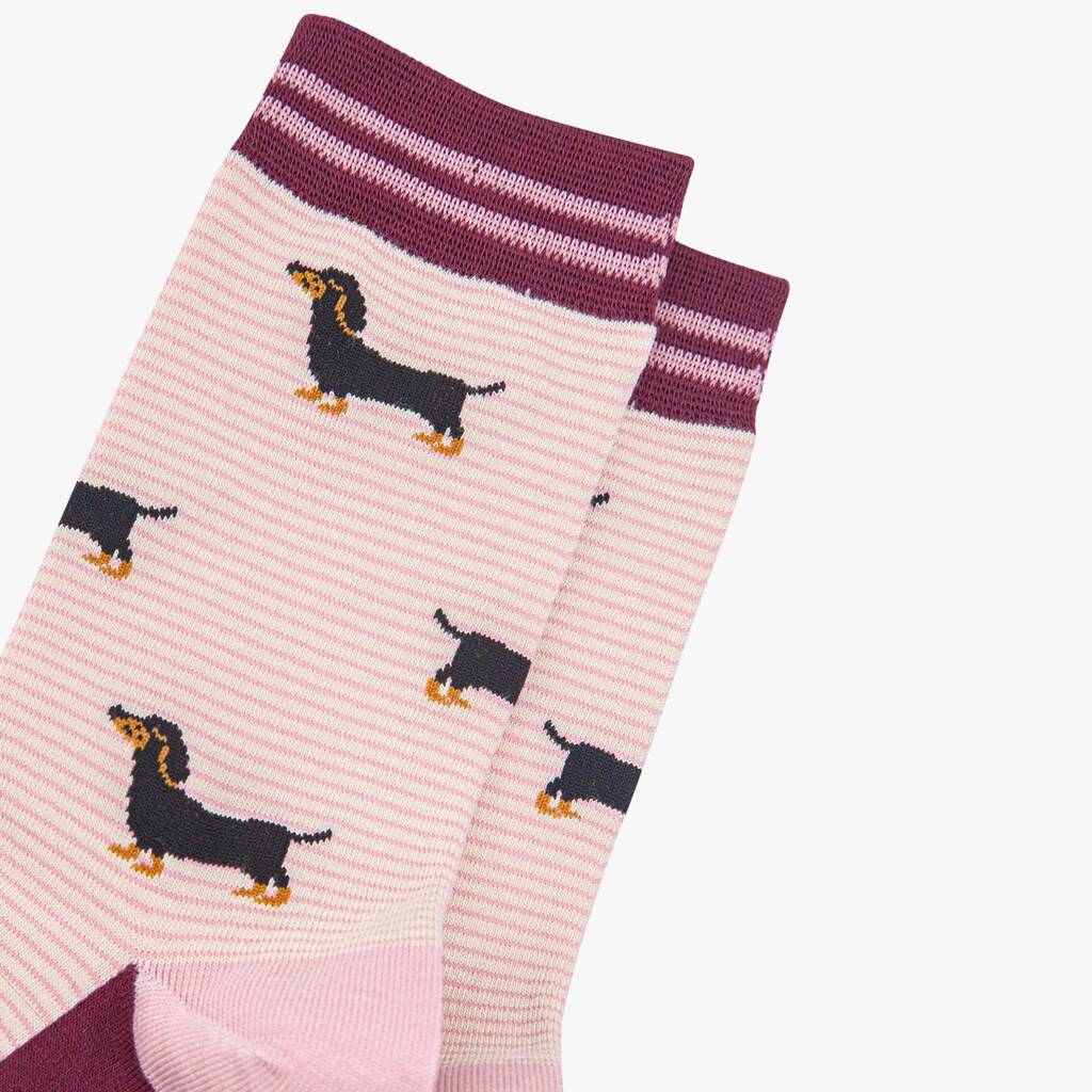 Sausage Dog Pinstripe Bamboo Ankle Socks Women's Berry Pink
