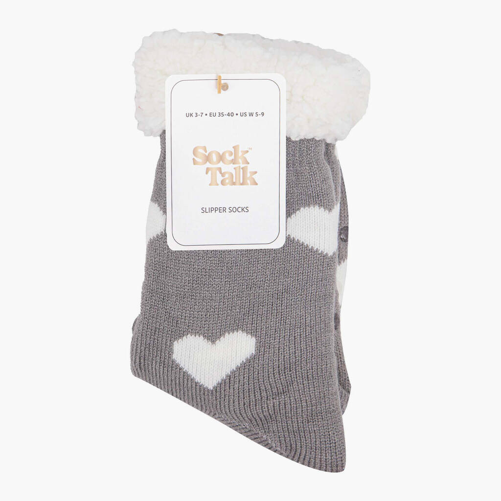 Women's Long Slipper Socks Grip Sole Hearts Grey, 1 of 3