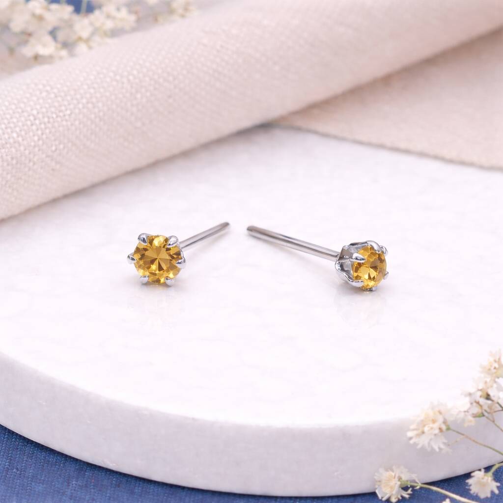 Sterling Silver Citrine Micro Stud Earrings – 3mm