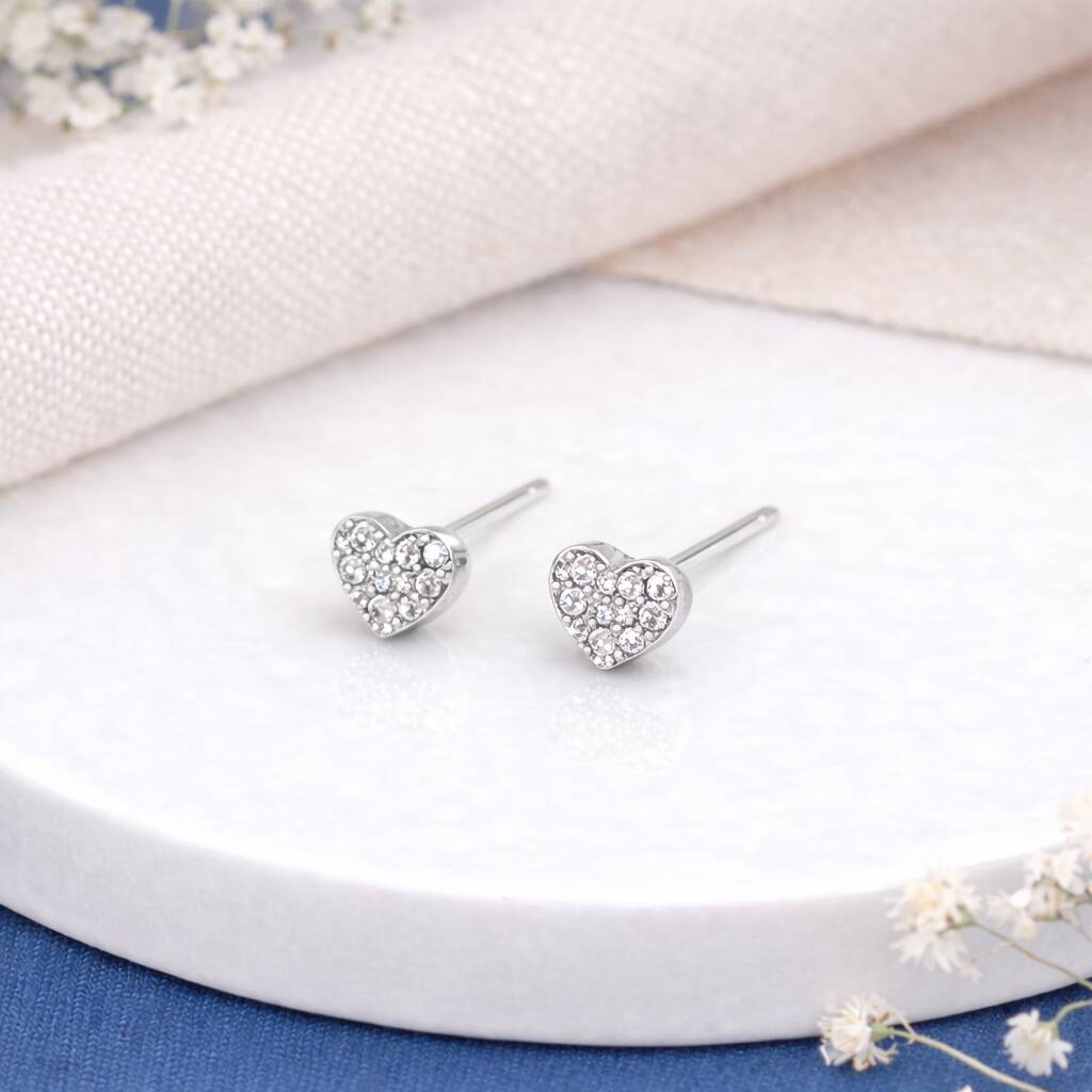 Sterling Silver Twinkling Micro Heart Stud Earrings – 3mm X 4mm