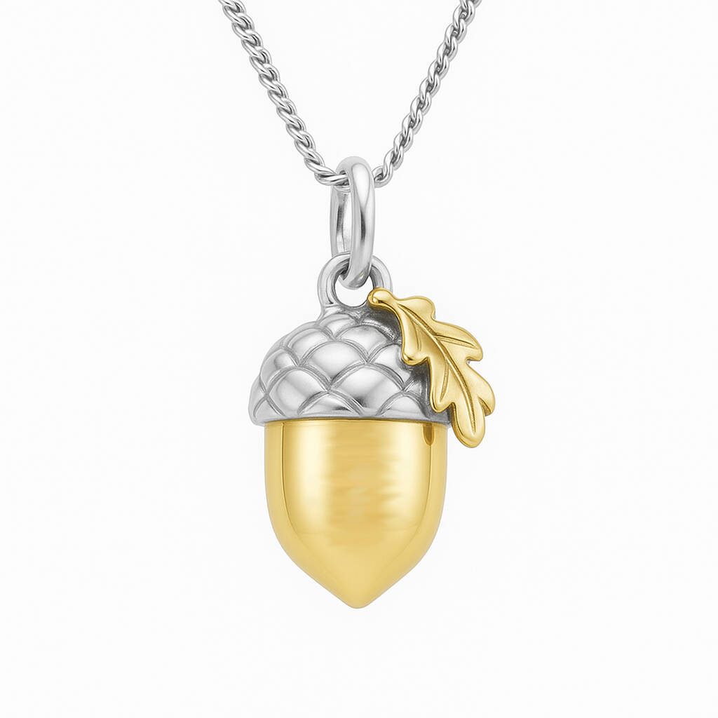 Personalised Sterling Silver And Gold Acorn Pendant Necklace